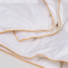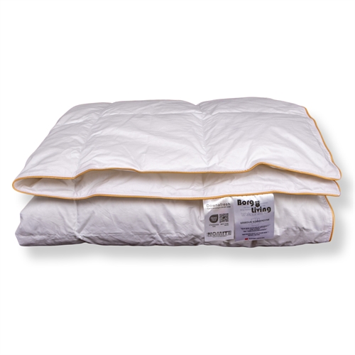 Der weiche Bezug aus 100% Baumwollcambric ist in kleine, enge Kassetten gewebt, die eine gleichmäßige Verteilung der Daunen und optimale Belüftung während der Nacht gewährleisten. Die dichte Webart sorgt zudem dafür, dass die Juniordecke NOMITE-zertifiziert ist, da Hausstaubmilben nicht durch den Bezug dringen können, was die Decke auch für Allergiker geeignet macht.