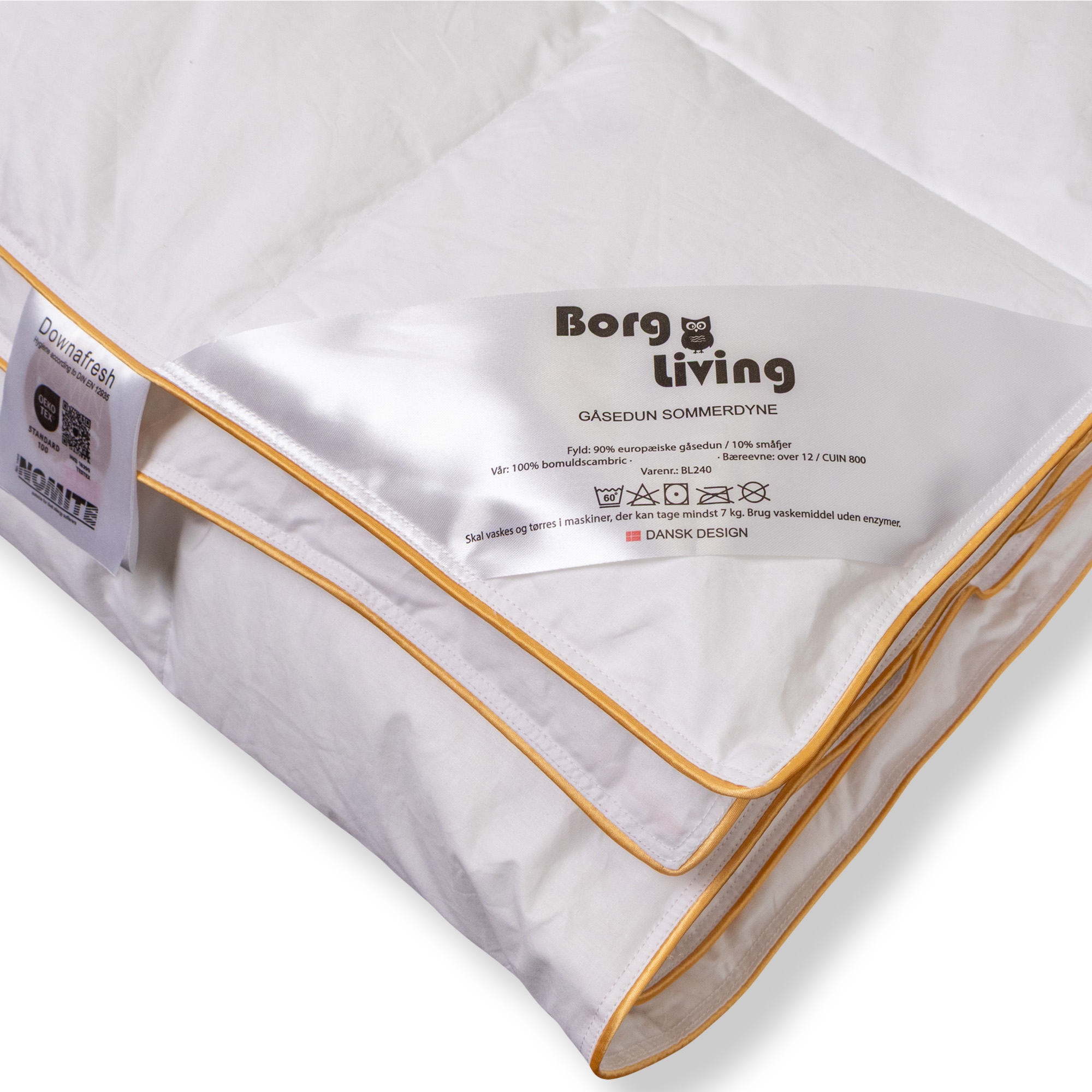Diese Serie von Sommerdecken mit Gänsedaunen verfügt über zahlreiche Zertifizierungen, die Ihre Garantie für eine gute und hygienische Qualitätsdecke sind. Die Decke ist sowohl NOMITE- als auch Downafresh-zertifiziert, was garantiert, dass die Daunen nach strengen europäischen Standards gereinigt und verarbeitet wurden und von Herstellern stammen, die die Regeln für Tierschutz einhalten.