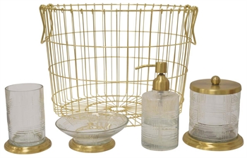 Vergoldetes Messing ist bekannt für seine Haltbarkeit und Feuchtigkeitsbeständigkeit und somit ideal für den Einsatz im Badezimmer. In Kombination mit seinem luxuriösen Aussehen macht es dies zu einer hervorragenden Wahl für dieses Aufbewahrungsglas.