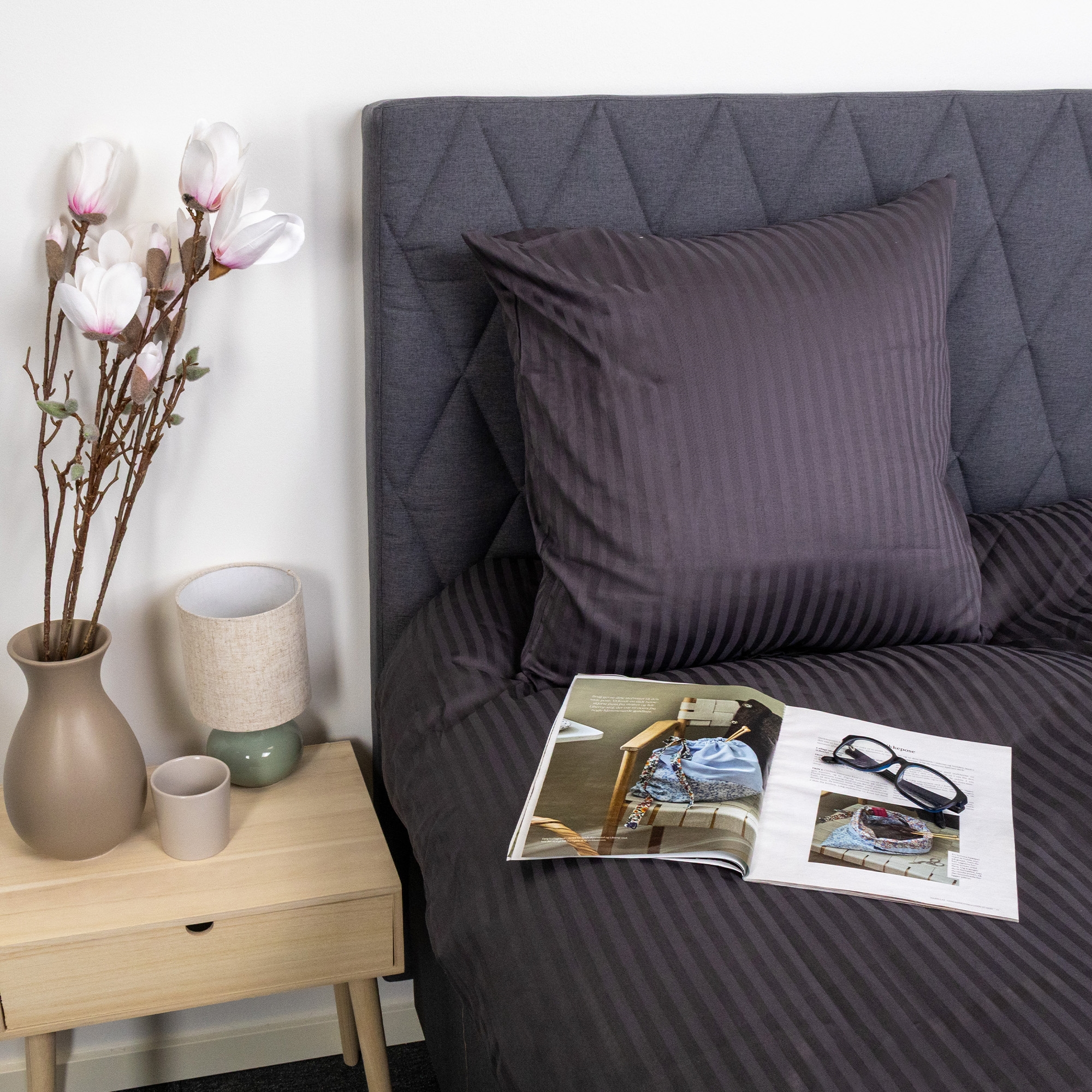 Geben Sie Ihrem Baby die besten Voraussetzungen für ruhigen und sicheren Schlaf mit diesem exklusiven Baby-Bettwäscheset aus 100% Baumwollsatin von Borg Living. Die gestreifte Bettwäsche ist jacquardgewebt mit dezenten, einfarbigen Streifen in Dunkelgrau, die einen ruhigen und zeitlosen Ausdruck schaffen – perfekt für Babybett und Kinderwagen.