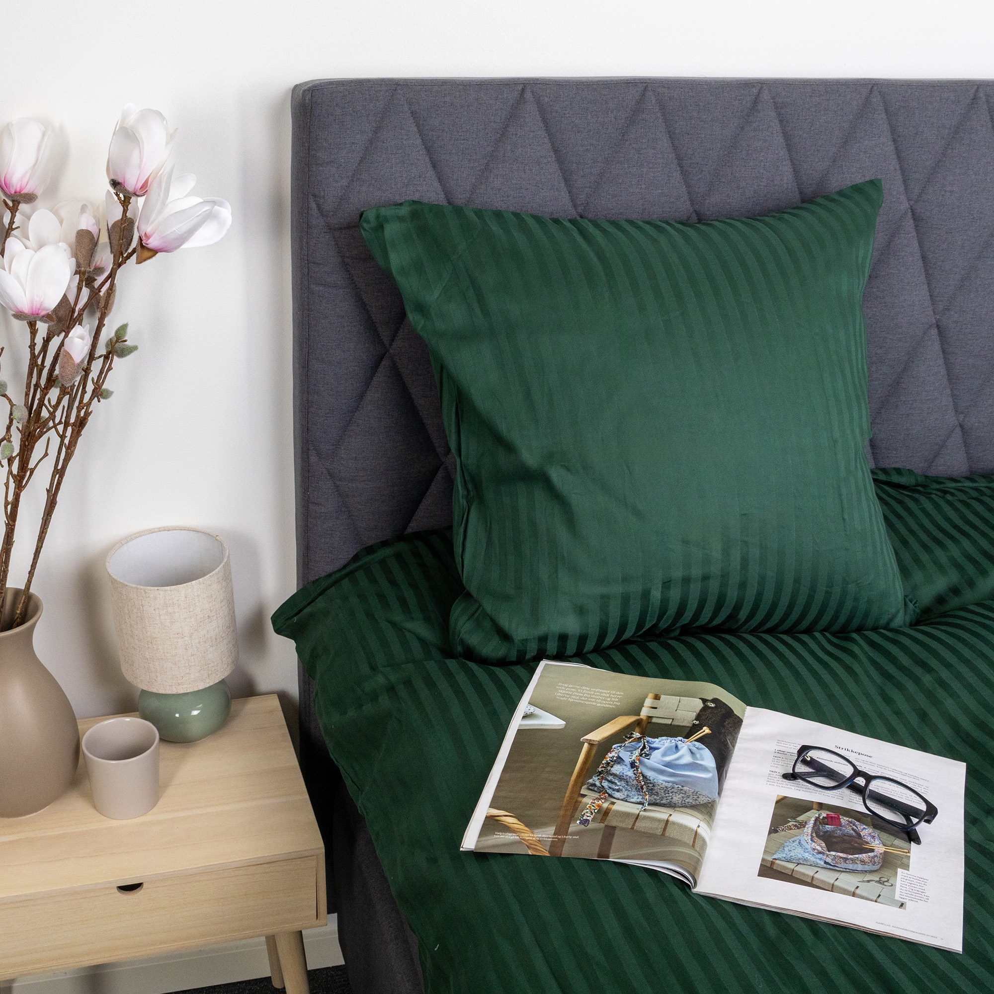 Geben Sie Ihrem Baby den besten Rahmen für ruhigen und geborgenen Schlaf mit diesem exklusiven Baby-Bettgarnitur aus 100% Baumwollsatin von Borg Living. Die gestreifte Bettwäsche ist jacquardgewebt mit dezenten, einfarbigen Streifen in Grün, die einen ruhigen und zeitlosen Ausdruck schaffen – perfekt für Babybett und Kinderwagen.