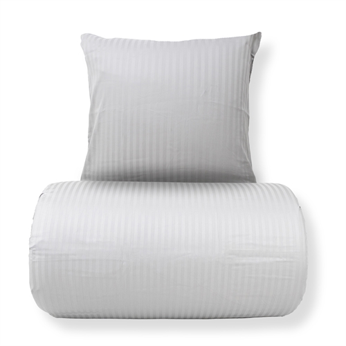 Schenken Sie Ihrem Baby beste Voraussetzungen für ruhigen und sicheren Schlaf mit diesem exklusiven Baby-Bettwäsche-Set aus 100% Baumwollsatin von Borg Living. Die gestreifte Bettwäsche ist im Jacquard verwebt mit dezenten, einfarbigen Streifen in Hellgrau, die einen ruhigen und zeitlosen Ausdruck schaffen – perfekt für Kinderbett und Kinderwagen.