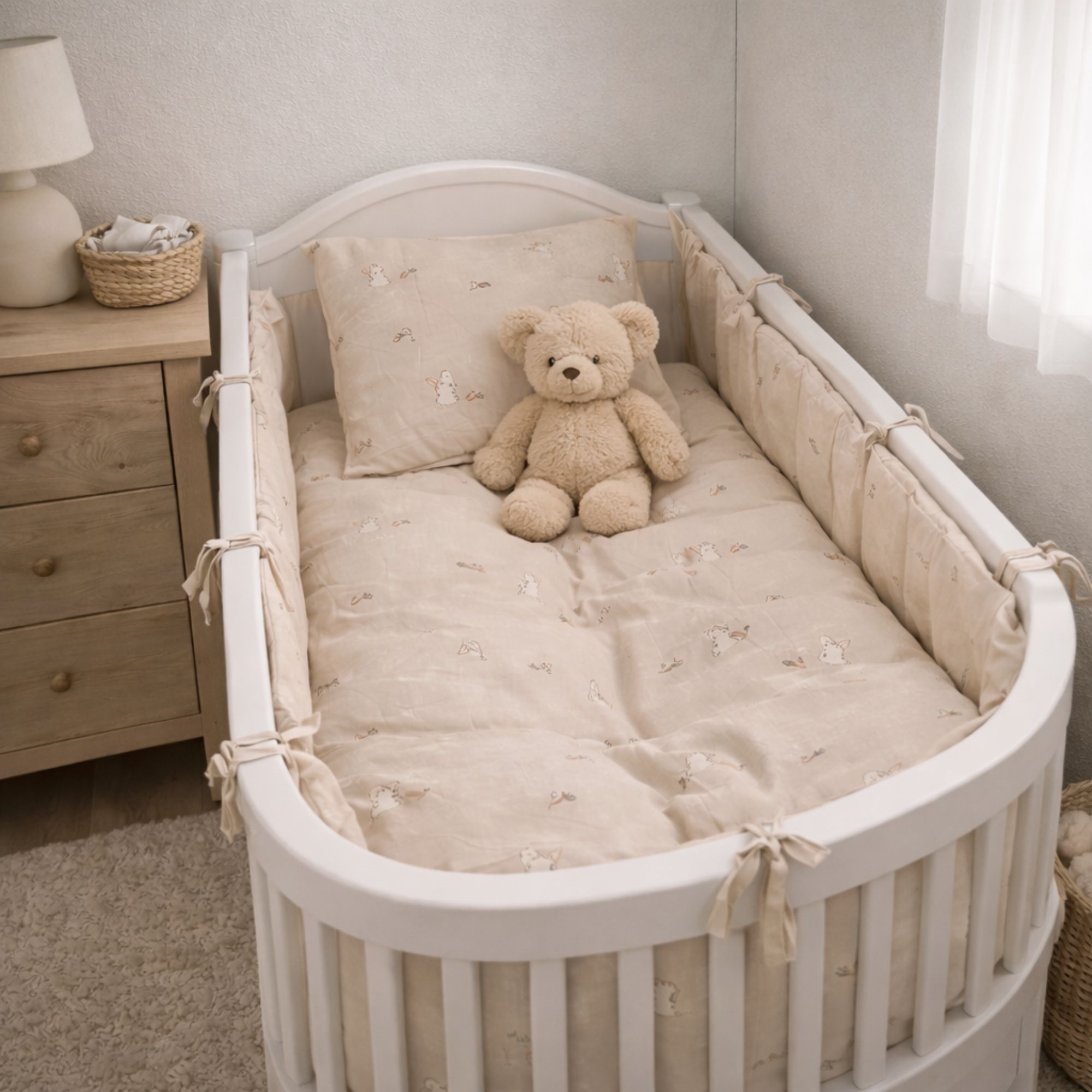 Diese weiche Baby-Bettwäsche besteht aus 100% weicher Baumwolle von hoher Qualität, die gute natürliche Eigenschaften besitzt, die der Bettgarnitur zugutekommen. Baumwolle ist unter anderem atmungsaktiv, sehr saugfähig, angenehm weich und komfortabel auf der Haut des Kindes. Außerdem ist sie leicht zu waschen, was gerade bei Babys und Kleinkindern eine kleine Erleichterung ist, da Zeit manchmal knapp sein kann.