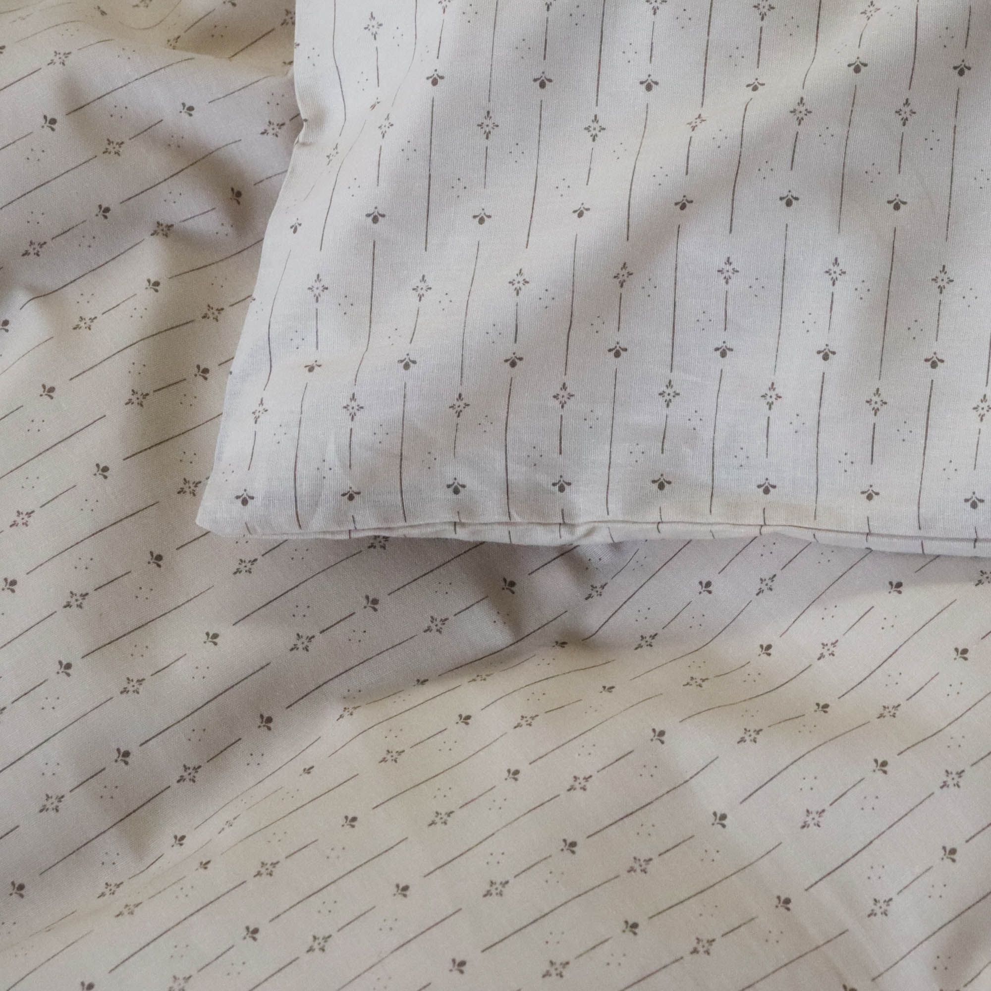 Das gestreifte Design in gedämpften Farben schafft eine entspannte Atmosphäre und gemütliche Umgebung zum Schlafen. Die Baby-Bettwäsche passt zu einer normalen Babykissengröße und kann im Bett, im Babynest, im Kinderwagen oder überall dort verwendet werden, wo die Decke mitgenommen wird. Die Babykissen sind oft viele Stunden am Tag fest um das Kind gebunden, da sie Ruhe, Wiedererkennung, Geborgenheit und Wärme für das Baby schaffen – nicht nur in der ersten Zeit, sondern oft bis zum Alter von 2-3 Jahren. Sie werden daher häufig benutzt und oft gewaschen, weshalb die meisten auch weiche Baumwollbettwäsche von hoher Qualität wünschen.