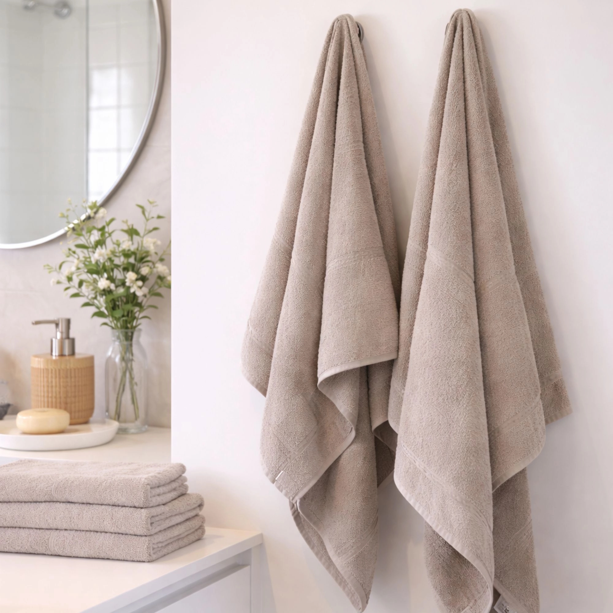 Bambusfasern sind bekannt für ihre natürliche Weichheit und hohe Saugfähigkeit. Die hohle Struktur der Fasern sorgt dafür, dass das Handtuch mehr Wasser aufnehmen und gleichzeitig schneller trocknen kann als herkömmliche Baumwollhandtücher. Die Kombination mit strapazierfähiger Baumwolle bietet optimale Langlebigkeit und macht sie perfekt für den täglichen Gebrauch.