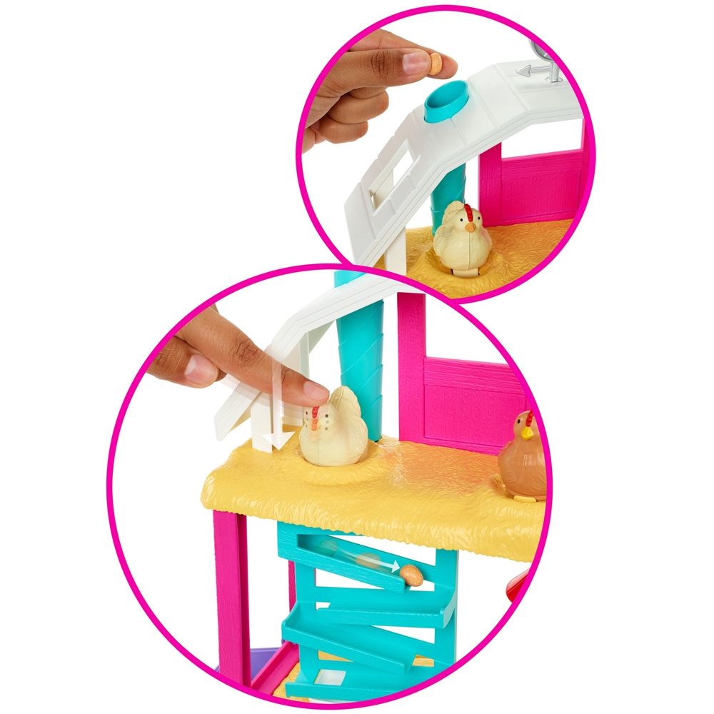 Begib dich mit Barbie® auf ein spannendes Bauernhof-Abenteuer mit dem Hatch & Gather Egg Farm™-Spielset! Dieses Set bietet stundenlangen Spielspaß mit der Barbie®-Puppe (brünett, 29,2 cm) in Petite-Größe, gekleidet in ein charmantes Kleid mit Hühnermotiv und blauen Stiefeln.