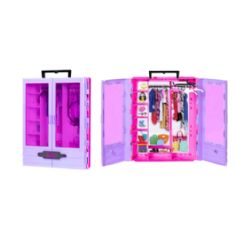 Startseite »Spielzeug » Andere marken » Barbie Puppen Barbie - New Entry Closet Barbie Guter Preis:51,99EUR Nur noch wenige auf Lager Anzahl In den Warenkorb Mehr dazu unter: Barbie Artikelnummer:LEGMAK-960-0166 Hast du Fragen zum Produkt? Der Barbie Fashionistas Ultimate Closet ist ein tragbarer Kleiderschrank, gestaltet im klassischen Barbie-Stil mit einer lila Außenfläche und einem rosafarbenen Innenraum. Die transparenten Türen geben einen Blick in den Schrank frei, wo sechs mitgelieferte Kleiderbügel Barbies Kleidung organisiert halten. Eine ausziehbare Stange macht es einfach, Kleidung beim Outfitwechsel aufzuhängen. Der Schrank bietet außerdem Platz zur Aufbewahrung einer Puppe (nicht enthalten) und ist mit einem Griff für den einfachen Transport ausgestattet, sodass Kinder ihn überallhin mitnehmen können. Zurück zu Barbie Puppen