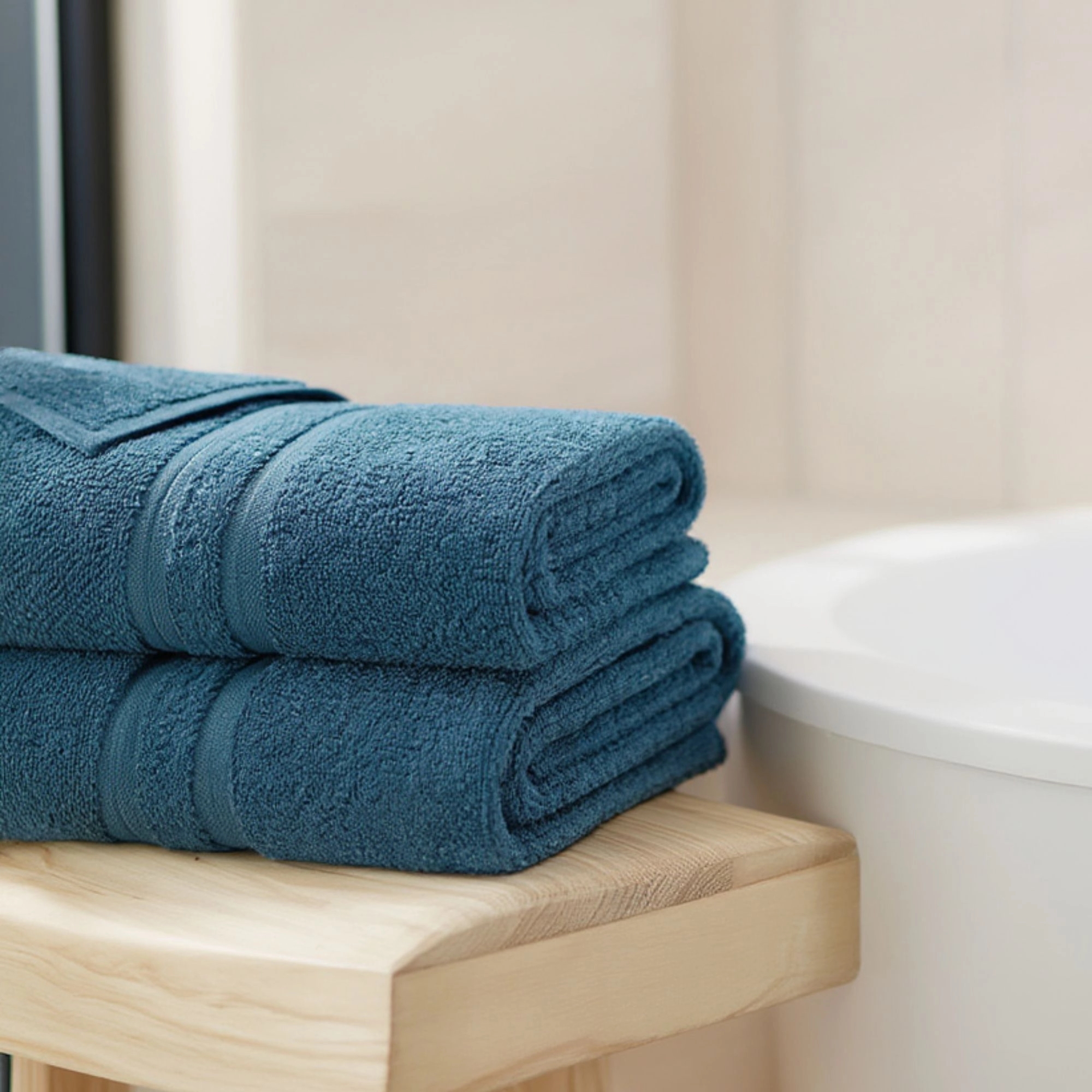 Wir empfehlen stets, brandneue Handtücher vor dem ersten Waschen in kaltem Wasser einzuweichen – dadurch verbessern Sie die Saugfähigkeit der Handtücher. Darüber hinaus können die Handtücher zum Erhalt ihrer Fülle und Weichheit im Trockner getrocknet werden.
