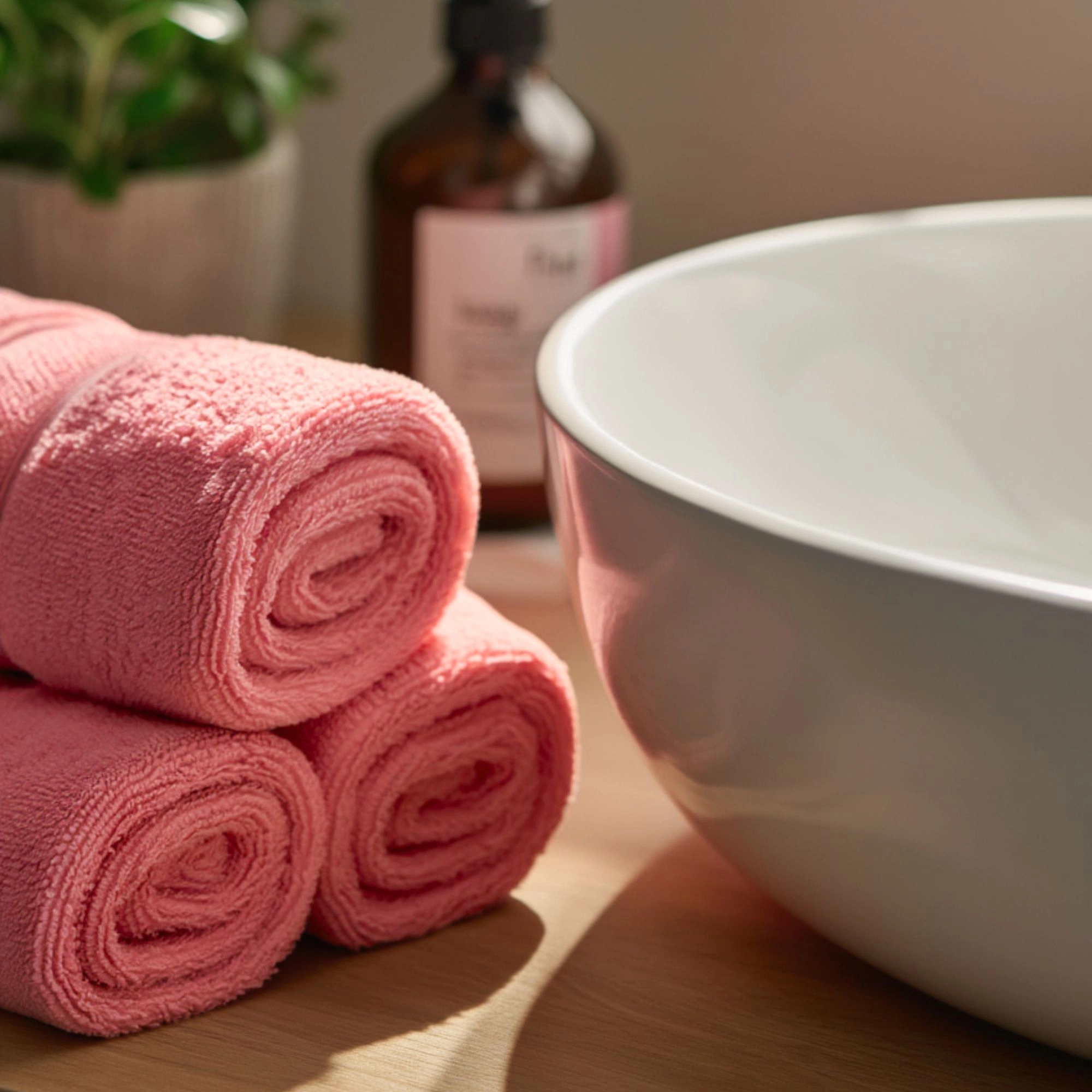 Wir empfehlen stets, neue Handtücher vor dem ersten Waschen in kaltem Wasser einzuweichen – so verbessern Sie die Saugfähigkeit der Handtücher. Außerdem können die Handtücher zum Erhalt ihrer Fülle und Weichheit im Trockner getrocknet werden.