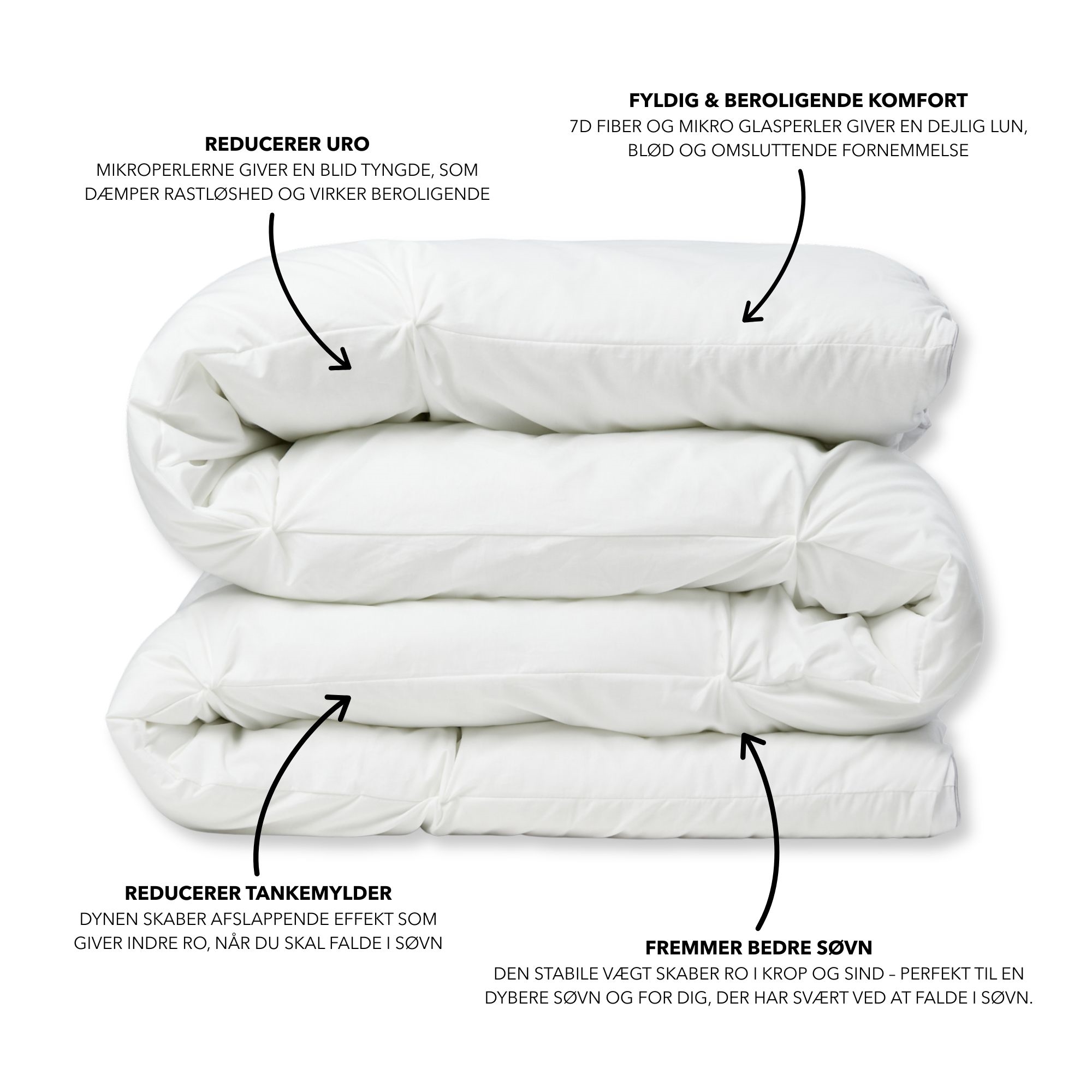 Das Gewicht der Glasperlen-Decke stimuliert das Nervensystem des Körpers und beruhigt dadurch Körper und Geist, sodass es leichter ist, zur Ruhe zu kommen. Für viele kann es eine große Herausforderung sein, den Körper abends herunterzufahren, ebenso die Gedanken. Diese Decke ist dafür konzipiert, genau diese Herausforderung zu lösen. Wenn der Körper zur Ruhe kommt, werden Sie typischerweise feststellen, dass die Gedanken ebenfalls folgen, und umgekehrt. Die Kugeldecke ist daher besonders geeignet für Personen, die Schlafstörungen erleben oder Schwierigkeiten haben, einzuschlafen. Schlafqualität ist einer der Schlüssel zu einem ausgeglichenen Geist und Körper, daher ist es wichtig, dies zu optimieren und auf den Körper zu hören, wenn er etwas signalisiert, z.B. Unruhe oder Rastlosigkeit.