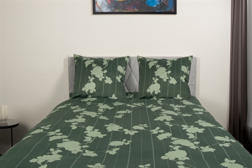 Bettwäsche 140 x 200 cm - 100 % Baumwollsatin - Rosenbloom grüne Bettwäsche mit Blumenmuster - Extra weiches Bettwäscheset von By Borg