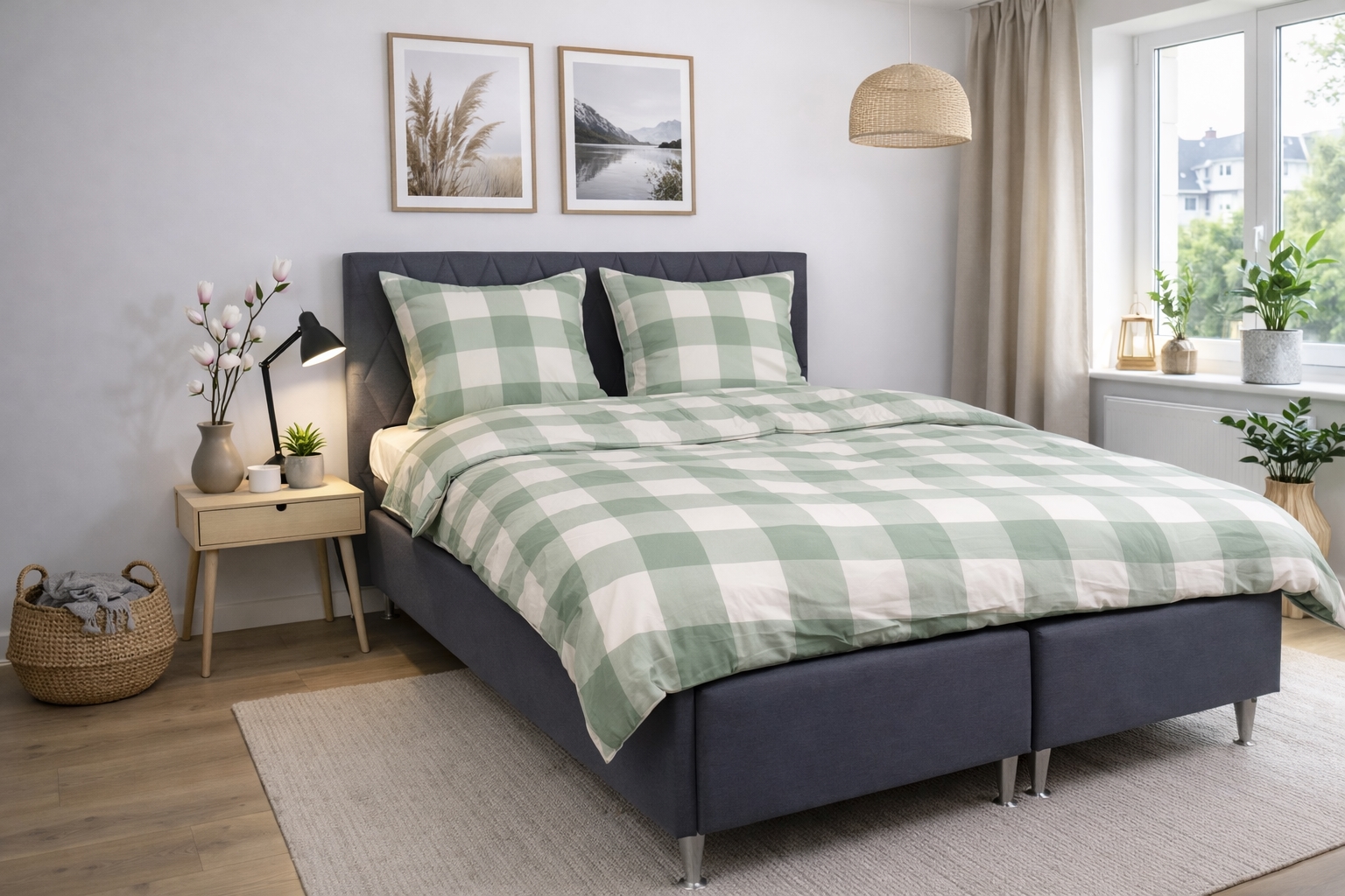 Startseite »Bettwäsche » Einzelne Bettwäsche » Einzelne Bettwäsche 140x200 cm Bettwäsche 140x200 cm - 100% Baumwolle - grün kariert Sparen66% Nordstrand Home 68,4923,49EURSparen 45,- Auf Lager Größe auswählen Variante wählen Anzahl In den Warenkorb Mehr dazu unter: Nordstrand Home Artikelnummer:2234-1 Lesen Sie unseren Bettwäsche-Ratgeber Sehen Sie unsere große Auswahl an Laken Sehen Sie unsere große Auswahl an Duvets 140x200 Hast du Fragen zum Produkt? Natürliches und atmungsaktives MaterialFühlt sich weich und angenehm auf der Haut anPraktischer Reißverschluss in verschleißfester Qualität Bettbezug: 140x200 cm Kissenbezug: 1 Stück à 60x63 cm Material: 100% weiche Baumwolle Gewebe: 170TC Percale Gewebe (Fadenzahl = Anzahl der Fäden pro Quadratzoll) Farbe: Grün Design: Kariert Marke: Nordstrand Home Verschluss: Bett- und Kissenbezug mit Reißverschluss Waschbar: 60° Trocknergeeignet: Ja Bügeln: Ja Zertifizierung: STANDARD 100 by OEKO-TEX® (2023OK2234). Ihre Garantie dafür, dass das Produkt frei von gesundheitsschädlicher Chemie ist. Bettwäsche aus Baumwolle mit grün kariertem Design Verleihen Sie Ihrem Schlafzimmer mit dieser eleganten Baumwoll-Bettwäsche von Nordstrand Home einen klaren und ruhigen Ausdruck. Das klassische karierte Design in grünen Nuancen schafft eine harmonische Atmosphäre und passt perfekt zu modernen sowie nordischen Einrichtungsstilen. Das Bettwäsche-Set ist aus 100% weicher Baumwolle gefertigt und in einer dichten 170TC Percale-Qualität gewebt. Percale-Gewebe bedeutet, dass der Stoff besonders fein und dicht gewebt ist, was eine glatte und atmungsaktive Oberfläche ergibt. Diese Webart sorgt dafür, dass Baumwollbettwäsche sich leicht und angenehm auf der Haut anfühlt – zugleich ist sie strapazierfähig und bleibt langlebig auch nach vielen Waschgängen. Die dichte Webart sorgt außerdem dafür, dass die Farbe auch nach wiederholtem Waschen bei 60 Grad intensiv und klar bleibt. Dadurch ist diese Percale-Bettwäsche eine praktische und dauerhafte Wahl für den täglichen Gebrauch. Die Bett- und Kissenbezüge sind mit einem praktischen Reißverschluss versehen, sodass das Set die ganze Nacht über ordentlich sitzt. Sehen Sie hier unsere gesamte Baumwoll-Bettwäsche Nordstrand Home Mit Nordstrand Home erhalten Sie Heimtextilien im dänischen Design – im nordischen Stil. Nordstrand Home legt großen Wert auf das Gefühl von Wohlbefinden in einer schönen, aber zugleich entspannten Umgebung. Mit Nordstrand Home müssen Sie keine Kompromisse eingehen: Sie finden stets Produkte in klassischen und modischen Farben. Nordstrand Home – So fühlen Sie sich zu Hause! Sehen Sie hier das komplette Sortiment von Nordstrand Home Zurück zu Einzelne Bettwäsche 140x200 cm