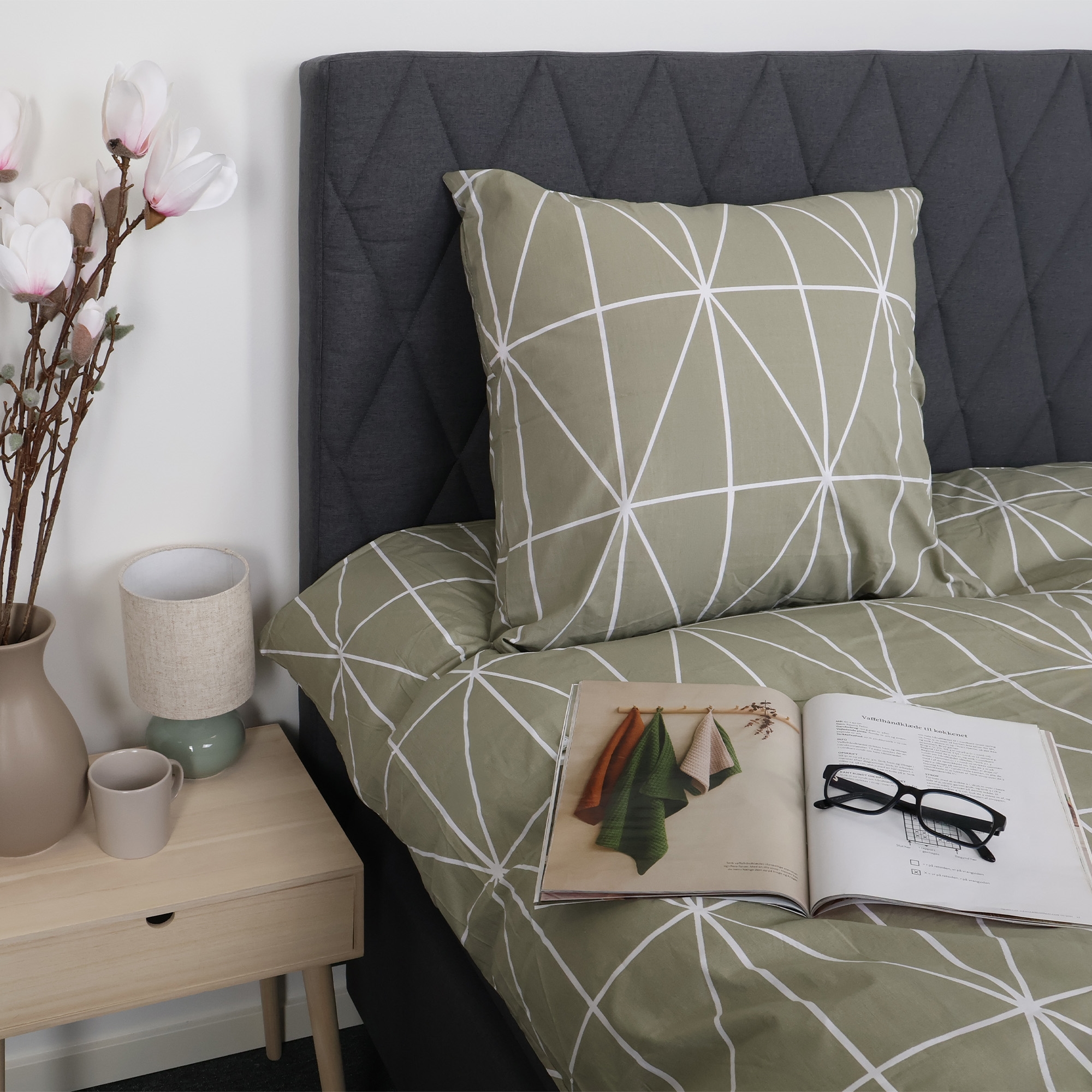 Startseite »Bettwäsche » Einzelne Bettwäsche » Einzelne Bettwäsche 140x200 cm Bettwäsche 140x200 cm - 100% Baumwolle - Grün mit weißem Harlekinmuster Sparen66% Nordstrand Home 68,4923,49EURSparen 45,- Auf Lager Größe auswählen Variante wählen Anzahl In den Warenkorb Mehr dazu unter: Nordstrand Home Artikelnummer:2230-1 Lesen Sie unseren Bettwäsche-Ratgeber Sehen Sie unser großes Sortiment an Laken Sehen Sie unsere große Auswahl an Decken 140x200 Hast du Fragen zum Produkt? Natürliches und atmungsaktives MaterialFühlt sich weich und angenehm auf der Haut anPraktischer Reißverschluss in strapazierfähiger Qualität Bettdeckenbezug: 140x200 cm Kissenbezug: 1 Stk. á 60x63 cm Material: 100% weiche Baumwolle Webart: 170TC Percale-Webart (Thread count = Anzahl der Fäden pro Quadratzoll) Farbe: Grün mit weißem Harlekinmuster Design: Harlekin Marke: Nordstrand Home Verschluss: Decken- und Kissenbezug mit Reißverschluss Waschbar: 60° Trocknergeeignet: Ja Bügelbar: Ja Zertifizierung: STANDARD 100 by OEKO-TEX® (2023OK2234). Ihre Garantie, dass das Produkt frei von gesundheitsschädlichen Chemikalien ist. Baumwollbettwäsche mit Harlekinmuster Verleihen Sie Ihrem Schlafzimmer ein schlichtes und ruhiges Erscheinungsbild mit dieser eleganten Bettwäsche aus Baumwolle von Nordstrand Home. Das klassische Harlekin-Design in Grün schafft eine harmonische Atmosphäre und passt perfekt zu modernem und nordischem Einrichtungsstil. Das Bettwäsche-Set ist aus 100% weicher Baumwolle gefertigt und in dichter 170TC Percale-Qualität gewebt. Percale-Webart bedeutet, dass der Stoff besonders fein und dicht gewebt ist, was eine glatte und atmungsaktive Oberfläche ergibt. Diese Webart sorgt dafür, dass sich die Baumwollbettwäsche leicht und angenehm auf der Haut anfühlt – zugleich ist sie strapazierfähig und hält vielen Wäschen stand. Die dichte Webart sorgt außerdem dafür, dass die Farbe auch nach wiederholtem Waschen bei 60 Grad schön und klar bleibt. Das macht diese Percale-Bettwäsche zu einer praktischen und langlebigen Wahl für den täglichen Gebrauch. Die Bettdecken- und Kissenbezüge sind mit einem praktischen Reißverschluss ausgestattet, sodass das Bettzeug die ganze Nacht über ordentlich liegt. Sehen Sie hier unsere gesamte Baumwoll-Bettwäsche Nordstrand Home Mit Nordstrand Home erhalten Sie Heimtextilien im dänischen Design – im nordischen Stil. Nordstrand Home legt großen Wert auf das Wohlfühlgefühl in einer schönen, zugleich aber entspannten Umgebung. Mit Nordstrand Home müssen Sie keine Kompromisse eingehen; Sie finden stets Produkte in klassischen und modischen Farben. Nordstrand Home – So fühlen Sie sich zuhause! Das komplette Sortiment von Nordstrand Home ansehen Zurück zu Einzelne Bettwäsche 140x200 cm