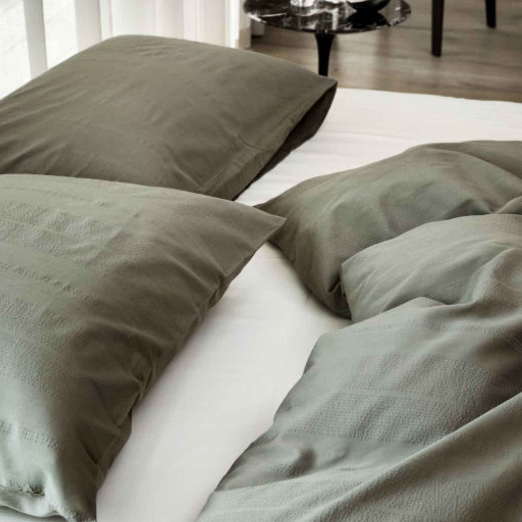 Startseite »Bettwäsche » Einzelne Bettwäsche » Einzelne Bettwäsche 140x200 cm Bettwäsche 140x200 cm - 100% Baumwolle - Høie of Scandinavia - Midnatt Nebelgrün Sparen50% Høie Of Scandinavia 136,4968,49EURSparen 68,- Auf Lager Größe auswählen Variante wählen Anzahl In den Warenkorb Mehr dazu unter: Høie Of Scandinavia Artikelnummer:6239-1 Lesen Sie unseren Bettwäsche-Guide Sehen Sie unsere große Auswahl an Laken Sehen Sie unsere große Auswahl an Decken 140x200 Hast du Fragen zum Produkt? Atmungsaktives Material, das einen guten Schlaf fördertWeiche Bettwäsche, die sich angenehm auf der Haut anfühltFür eine komfortable Nachtruhe die ganze Nacht Bettbezug: 140x200 cm Kissenbezug: 1 Stk. à 60x63 cm Material: 100% extra feine Baumwolle Webart: Extra feine 220TC (Thread count = Anzahl der Fäden pro Quadratzoll) Farbe: Grün Design: Midnatt Nebelgrün Marke: Høie of Scandinavia Verschluss: Bettbezug mit Reißverschluss, Kissenbezug mit Umschlag Waschbar: 60 °C Trocknergeeignet: Ja Zum Bügeln geeignet: Ja Zertifizierung: Svanen-Label für eine bessere Zukunft Zertifizierung: EASY CARE behandelt, was bedeutet, dass es nach dem Waschen nicht knittert. Zertifizierung: STANDARD 100 by OEKO-TEX® (M1YLRXR91). Ihre Garantie, dass das Produkt frei von gesundheitsschädlicher Chemie ist. Dieses Bettwäsche-Set von Høie Of Scandinavia ist aus 100% extra feiner Baumwolle mit einer feinen 220TC-Webart gefertigt, die eine weiche und glatte Oberfläche mit dezentem Glanz bietet. Baumwolle ist ein natürliches Material, das sich weich auf der Haut anfühlt und gleichzeitig atmungsaktiv ist, sodass der Körper nachts Wärme und Feuchtigkeit abgeben kann. Dadurch eignet sich Baumwollbettwäsche ganzjährig, sowohl für warme als auch für kühlere Nächte. Baumwolle ist bekannt für ihre Robustheit und Strapazierfähigkeit und hält häufiges Waschen und täglichen Gebrauch aus, ohne dass die Qualität darunter leidet. Die Bettwäsche ist STANDARD 100 by OEKO-TEX® zertifiziert, was Ihre Garantie dafür ist, dass das Produkt frei von gesundheitsschädlicher Chemie ist. Sie ist zudem Easy-Care-behandelt, was weniger Knitter und bessere Form nach dem Waschen sicherstellt. Easy Care macht Ihre Bettwäsche extra weich und erleichtert das Bügeln, und das Svanen-Label steht für eine bessere Zukunft. Baumwollsatin-Bettwäsche ist daher eine hervorragende Wahl für alle, die zusätzlichen Komfort und ein hotelähnliches Gefühl zu Hause wünschen, dabei aber ein Naturmaterial bevorzugen, das pflegeleicht und angenehm zum Schlafen ist. Sehen Sie hier unsere gesamte Bettwäsche aus Baumwolle Høie Of Scandinavia Høie of Scandinavia ist eine bekannte skandinavische Textilmarke, die seit 1850 eine lange Geschichte insbesondere im Bereich Bettwäsche, Decken und Kissen hat. Høie ist bekannt für hohe Qualität, zeitloses Design und Komfort – das spiegelt sich in ihrem nordischen Stil und der Funktionalität wider. Høie kombiniert traditionelles Handwerk mit moderner Produktion und Materialien, um Produkte zu schaffen, die sowohl angenehm zum Schlafen als auch langlebig im Alltag sind. Sehen Sie hier das komplette Høie-Angebot Zurück zu Einzelne Bettwäsche 140x200 cm