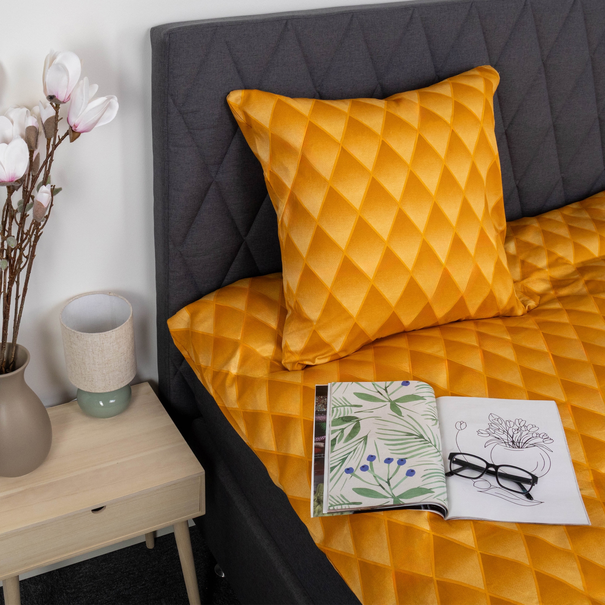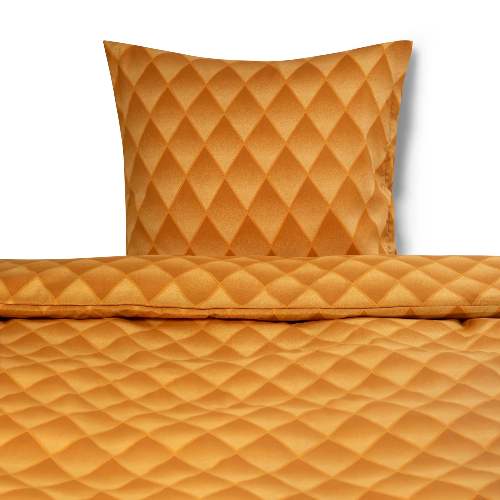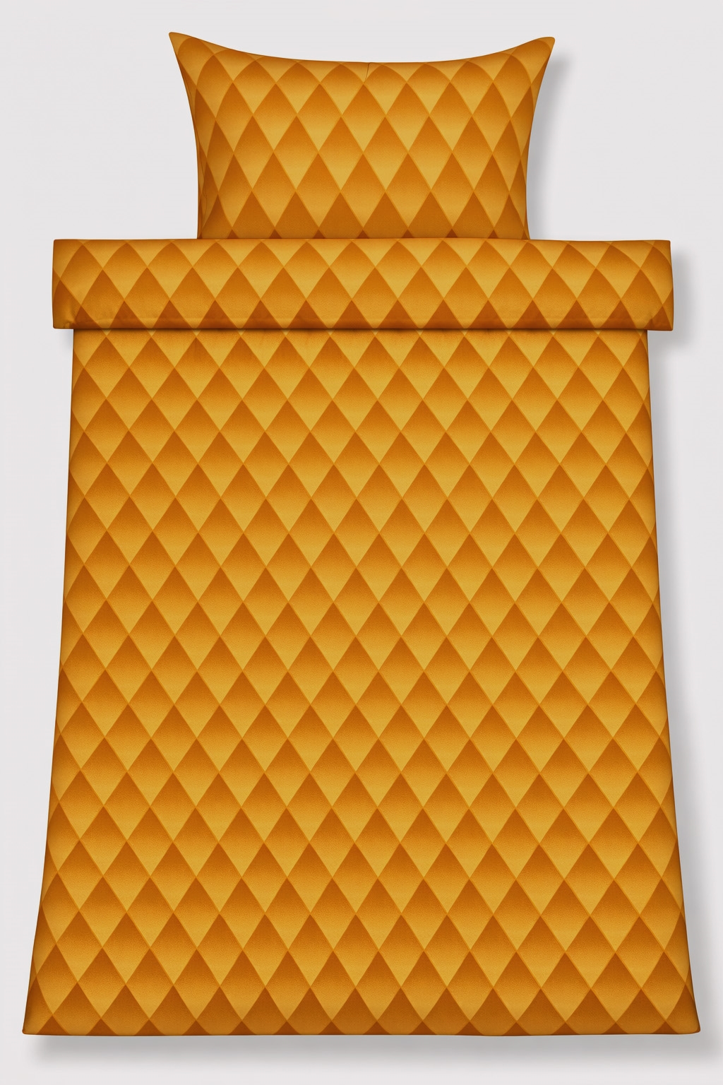 Verleihen Sie dem Schlafzimmer einen exklusiven und modernen Ausdruck mit dieser orangefarbenen Harlekin-Bettwäsche aus 100% Baumwollsatin. Das abgestufte Diamantmuster erzeugt einen schönen 3D-Effekt, bei dem die Farben harmonisch ineinander übergehen und dem Bett Tiefe und Charakter verleihen. Ein Bettwäscheset, das sowohl Persönlichkeit als auch Eleganz in Ihre Einrichtung bringt.
