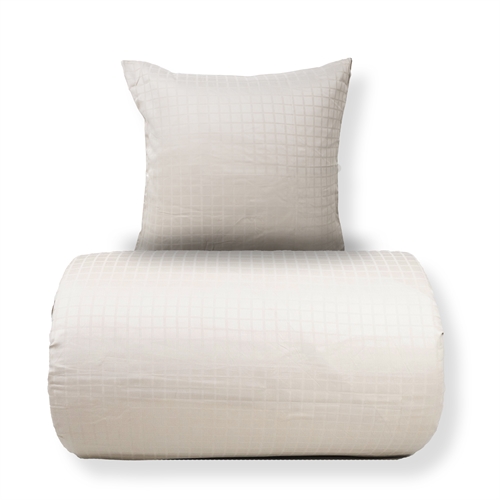 Verleihen Sie Ihrem Schlafzimmer einen eleganten und exklusiven Ausdruck mit dem Daisy-Bettwäsche-Set von By Night, hergestellt aus 100% weichem Baumwollsatin mit jacquardgewebtem Muster. Die dezenten Quadrate sind direkt in den Stoff eingewebt und schaffen ein schlichtes, zeitloses Design mit schöner Struktur und leichtem Glanz.