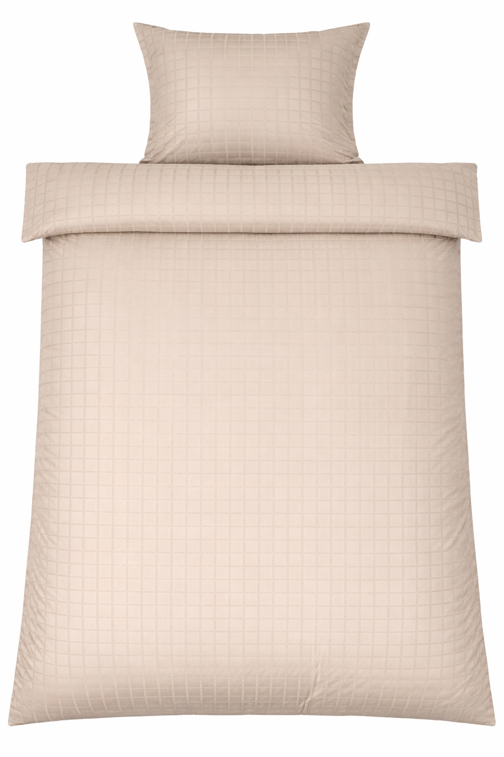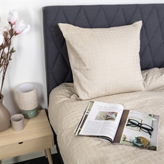 Die sandfarbenen Quadrate verleihen einen modernen und anspruchsvollen Look, der sowohl in minimalistische als auch klassische Schlafzimmer passt. Decken- und Kissenbezug werden mit einem verdeckten Reißverschluss geschlossen, der für ein sauberes Finish sorgt und die Decke sicher an ihrem Platz hält.