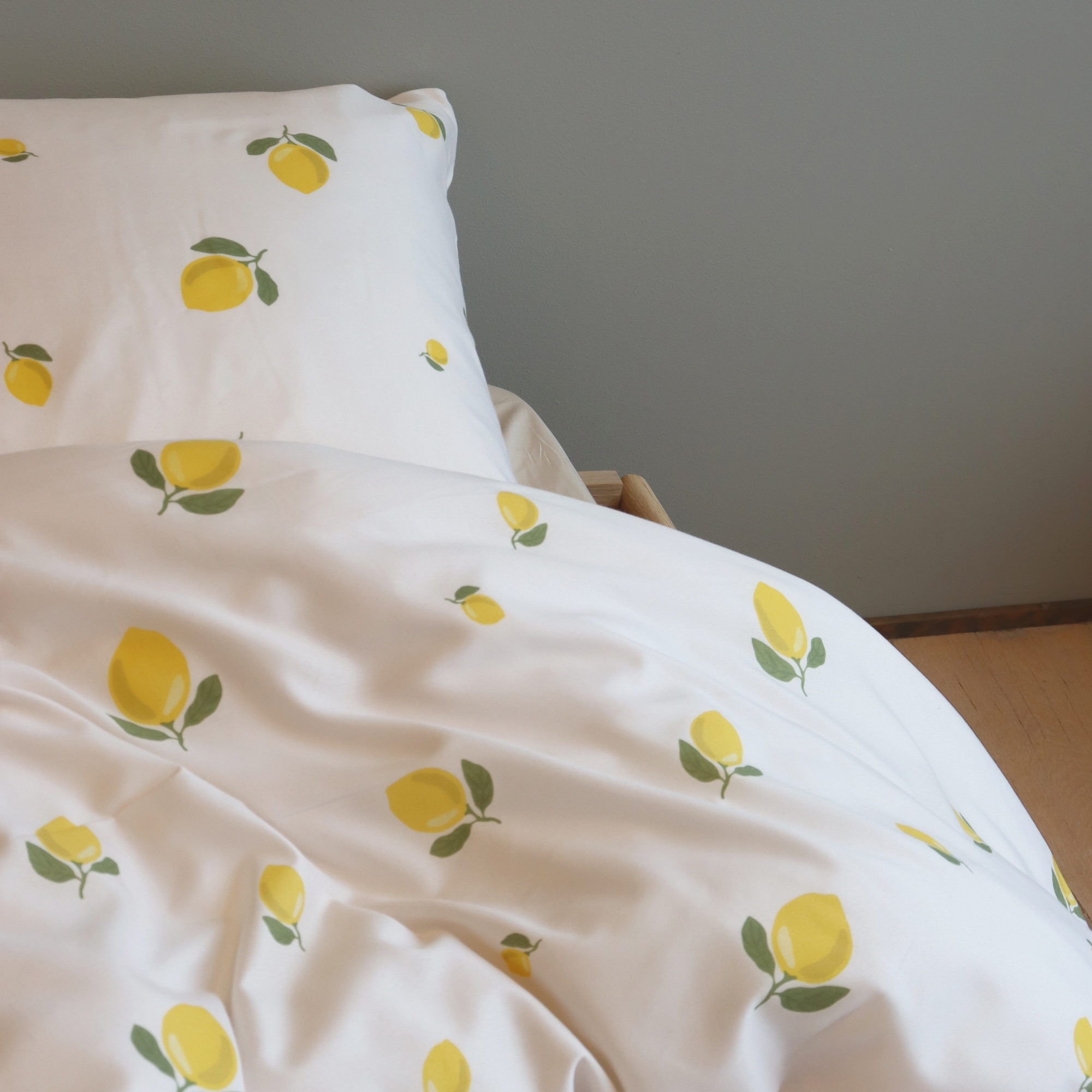 Bringen Sie Frische ins Schlafzimmer mit einem schönen und praktischen Bettwäsche-Set aus 100% Mikrofaser mit einem eleganten Druck kleiner Zitronen. Mikrofaser ist eine beliebte Wahl für alle, die weiche, leichte und funktionale Bettwäsche möchten, die im Alltag leicht zu pflegen ist.