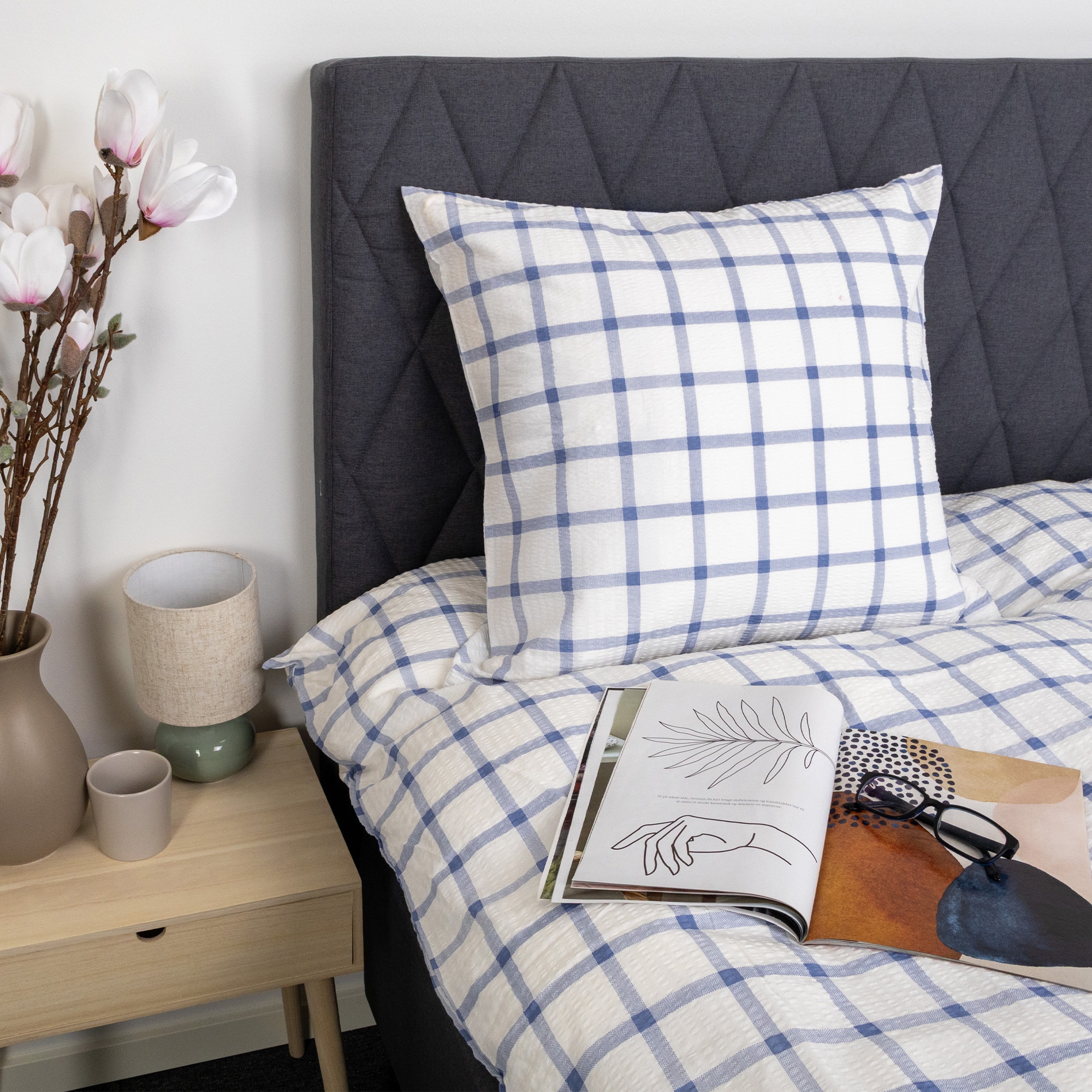Bett- und Kissenbezüge werden mit einem Reißverschluss geschlossen, was das Beziehen erleichtert und sowohl Decke als auch Kissen die ganze Nacht über sicher an ihrem Platz hält. Das karierte Design vermittelt einen ruhigen und zeitlosen Eindruck, der sowohl in moderne als auch klassische Schlafzimmer passt.