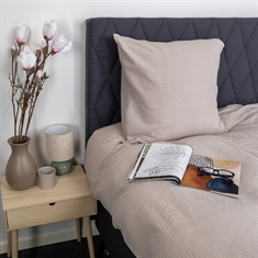 Die Bettwäsche hat eine Fadendichte von 200 TC, die ein gutes Gleichgewicht zwischen Haltbarkeit, Komfort und Weichheit gewährleistet. Die gewaffelte Struktur sorgt dafür, dass die Bettwäsche nicht gebügelt werden muss, um gut auszusehen – der charakteristische Look ist ein natürlicher Teil des Designs.