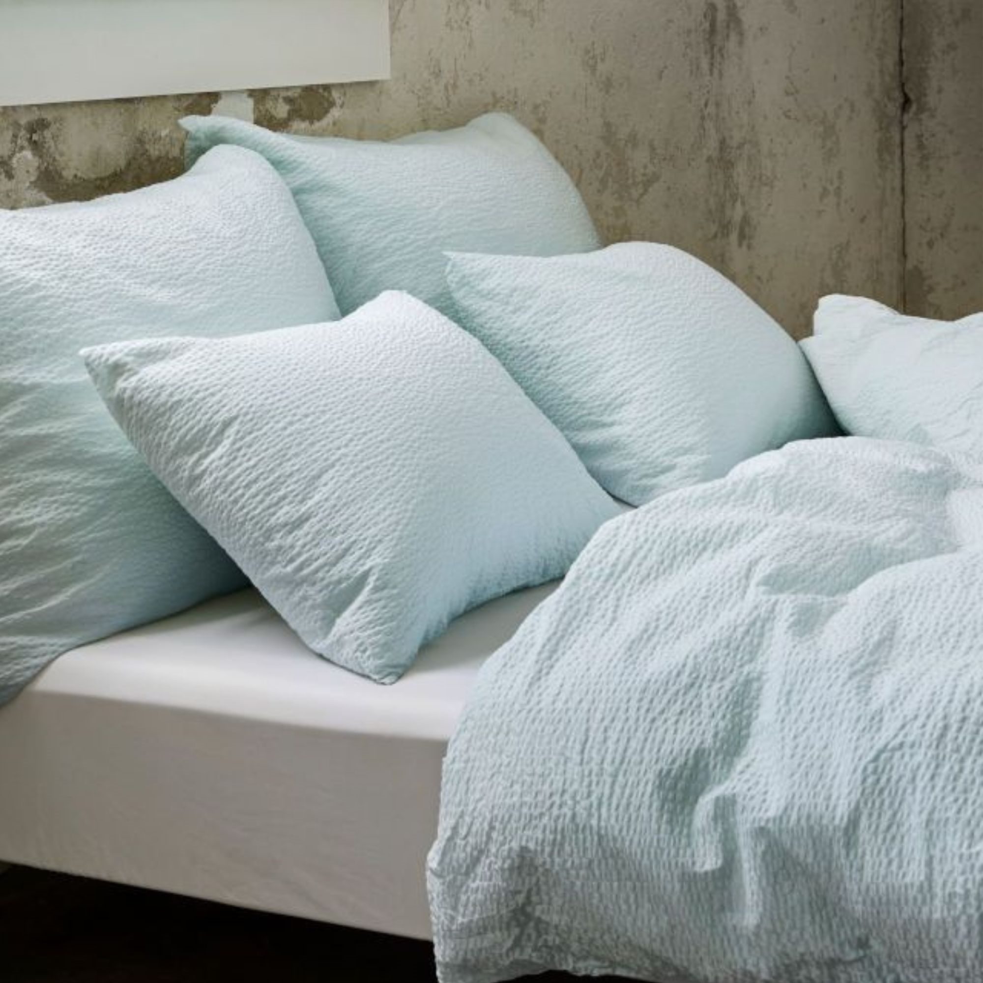 Genießen Sie einen leichten, luftigen und angenehmen Schlaf mit Seersucker-Bettwäsche aus 100% Baumwolle. Diese besondere Webart – auch bekannt als Baumwollkrepp oder Krepp-Bettwäsche – erzeugt die charakteristische wellige und leicht gekräuselte Struktur, die der Bettwäsche ihr luftiges Erscheinungsbild und ihre kühlende Komforteigenschaften verleiht.