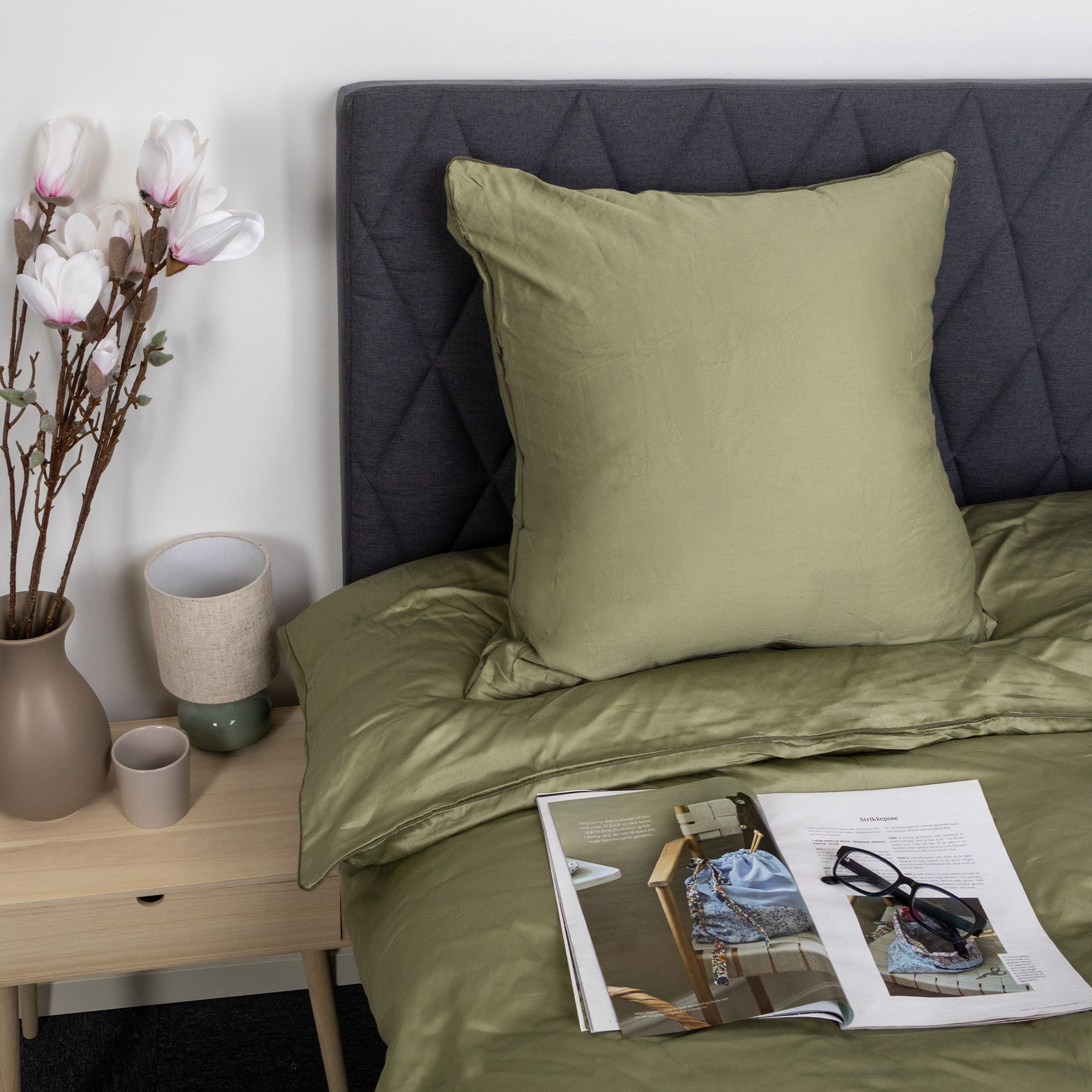 Verleihen Sie dem Schlafzimmer ein elegantes und luxuriöses Erscheinungsbild mit diesem exklusiven Bettwäsche-Set aus 100% Baumwollsatin mit dekorativer Paspelkante von By Borg. Das einfarbige Design in tiefem Grün kombiniert mit einer dunkleren Paspelkante sorgt für einen klaren und sophistizierten Look, der das Gesamtbild des Schlafzimmers aufwertet.