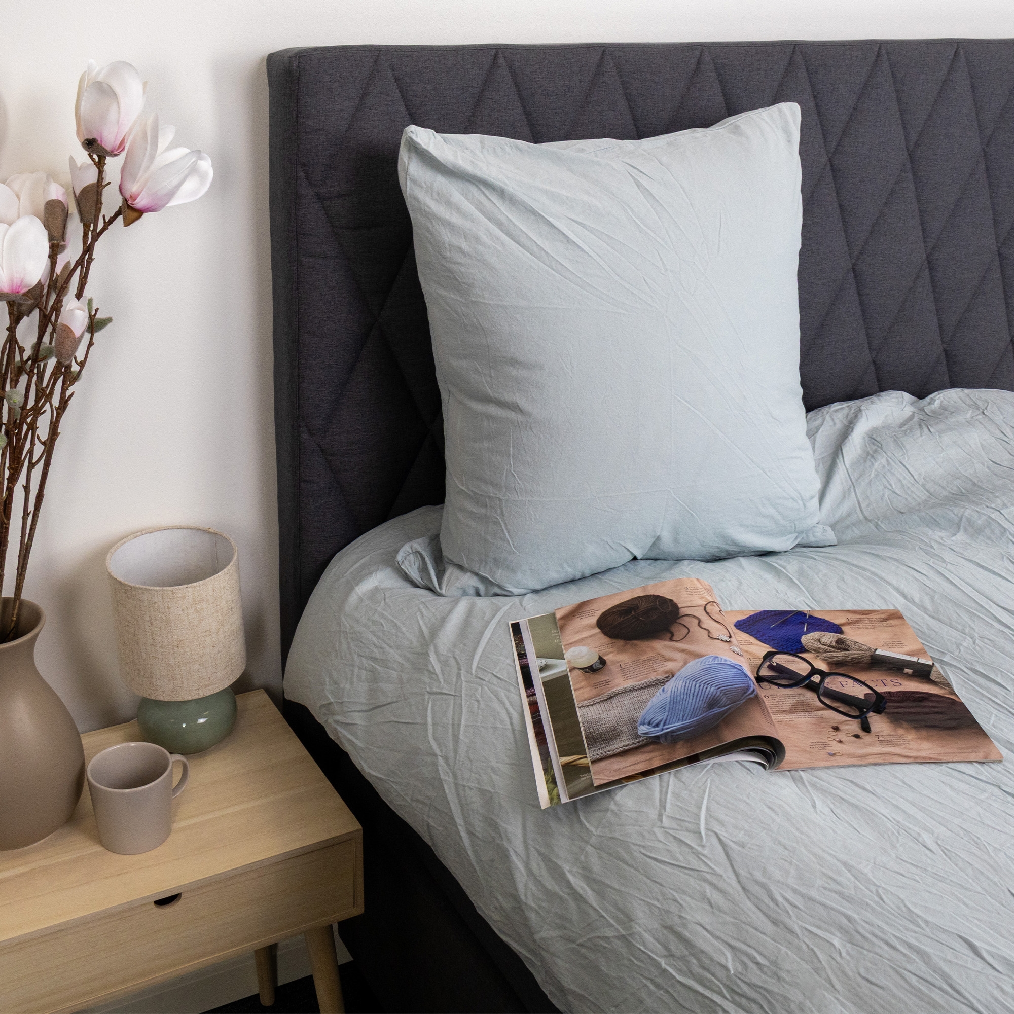 Die enzymgewaschene Behandlung macht die Baumwollfasern weich und verleiht der Bettwäsche dieselbe Weichheit, die man normalerweise erst nach vielen Wäschen erreicht. Der Stonewash-Prozess sorgt zudem für einen dezenten, matten Ausdruck mit schönen Farbnuancen, die dem Schlafzimmer ein entspanntes und zeitloses Ambiente geben.