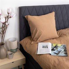 Der Decken- und Kissenbezug wird mit einem innenliegenden, verdeckten Reißverschluss geschlossen, der eine cleane Optik schafft und das Wechseln der Bettwäsche erleichtert. Der braune Ton und das einfarbige Design machen das Set leicht kombinierbar mit sowohl hellen als auch dunklen Elementen im Schlafzimmer.