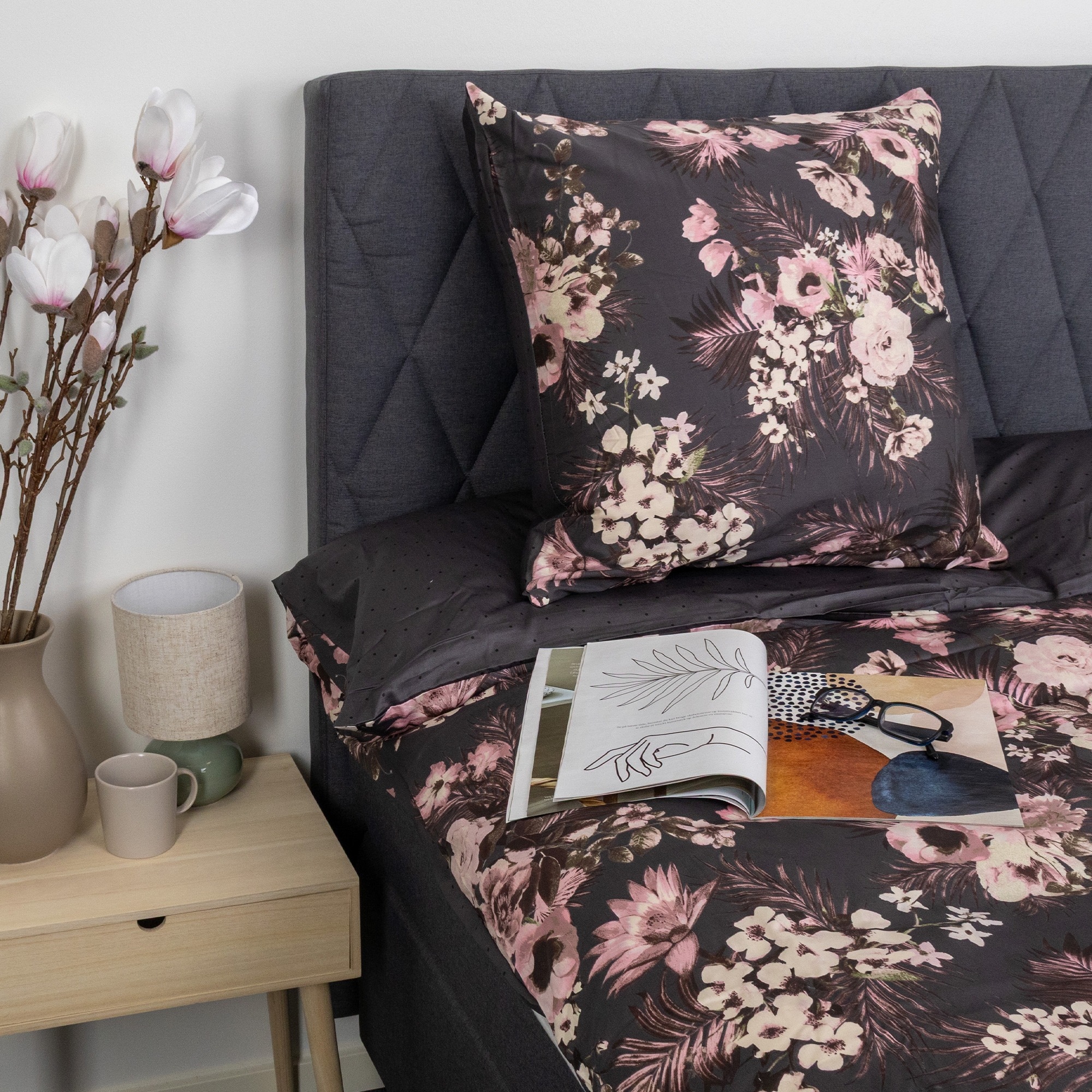 Startseite »Bettwäsche » Einzelne Bettwäsche » Extra lange Bettwäsche 140x220 cm Bettwäsche 140x220 cm - Wendedesign aus 100 % Baumwollsatin - Flowers & Dots grau - Bettwäsche-Set von By Night Sparen60% Borg LivingBy Night 95,4938,49EURSparen 57,- Auf Lager Größe auswählen Variante wählen Anzahl In den Warenkorb Mehr dazu unter: Borg Living Artikelnummer:477-2 Lies unseren Bettwäsche-Guide Sieh dir unsere große Auswahl an Laken an Schau dir auch unsere große Auswahl an Decken 140x220 cm an Hast du Fragen zum Produkt? Hochwertige BettwäscheExtra feines SatingewebeWeich und glänzend Deckenbezug: 140x220 cm Kissenbezug: 1 Stk. á 60x63 cm Material: 100 % feiner Baumwollsatin Webung: Extrafeine 240TC Satinfäden (Fadenzahl = Anzahl der Fäden pro Quadratzoll) Farbe: Grau Design: Flowers & Dots Wendbar: - Vorderseite: Blumenmuster - Rückseite: Punkte Marke: By Night Verschluss: Decke und Kissenbezüge mit verdecktem YKK-Reißverschluss Waschen: 60° Trocknen im Trockner: Ja Bügelbar: Ja Zertifizierung: STANDARD 100 by OEKO-TEX® (2018OK0658) Bettwäsche aus 100 % dicht gewebtem Baumwollsatin. Dieses Bettwäsche-Set von By Night ist bekannt für seine schöne und glatte Oberfläche, die sich angenehm weich auf der Haut anfühlt. Das Gute an Baumwollsatin ist, dass es atmungsaktiv ist und dich im Sommer angenehm kühl und im Winter warm hält. Diese Eigenschaft macht die Bettwäsche das ganze Jahr über verwendbar. Darüber hinaus ist die Bettwäsche zu 100 % durchgefärbt, was bedeutet, dass die Farbe während der Produktion in die Baumwollfasern eingebunden wird. Dies führt zu einer unglaublich hohen Farbechtheit und Waschechtheit. Das Bettwäsche-Set ist OEKO-TEX® zertifiziert. Die Zertifizierung stellt sicher, dass das Produkt keine gesundheitsschädlichen Stoffe enthält und unter ordnungsgemäßen Bedingungen hergestellt wurde, damit du nachts sicher schlafen kannst – so achten wir auch gut auf die Umwelt. Wendedesign: Die Bettwäsche ist im Wendedesign gefertigt, was bedeutet, dass beide Seiten der Bettwäsche gemustert oder farbig sind. Ein Wendebettenset bietet dir die Möglichkeit, das Aussehen zu verändern, indem du es umdrehst. So kannst du es mit verschiedenen Dekorationen oder Farben im Schlafzimmer kombinieren. Wendedesign – für eine flexiblere Inneneinrichtung! Das Bettwäsche-Set ist eine beliebte Wahl für alle, die eine hochwertige Bettwäsche mit einem schönen und stilvollen Design suchen. Decken- und Kissenbezüge lassen sich mit einem versteckten YKK-Reißverschluss schließen. Kaufe hier deine passenden Kissenbezüge für deine zusätzlichen Kissen. Erfrische dein Bett und dein Schlafzimmer mit einer schönen und luxuriösen Bettwäsche wie dieser. Nutze die Möglichkeit, dir maximalen Schlafkomfort zu sichern, indem du dir ein neues, weiches und hochwertiges Bettlaken holst. Hier findest du unser großes Sortiment an Qualitäts-Laken. By Night ist geprägt von dänischem Design – sie bieten dir komfortable Schlafkomponenten von höchster Qualität für dein nächtliches Umfeld. By Night produziert Bettwäsche und Laken für die ganze Familie und legt großen Wert auf aktuelle Trends, sodass immer modische Farben und Designs entstehen. Zurück zu Extra lange Bettwäsche 140x220 cm