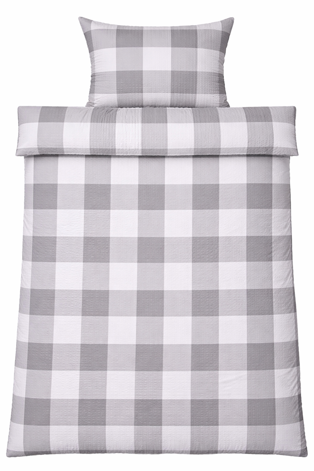 Bett- und Kopfkissenbezüge werden mit einem Reißverschluss verschlossen, was das Beziehen erleichtert und die Decke sowie das Kissen die ganze Nacht über sicher an Ort und Stelle hält. Das karierte Design in Weiß und Grau verleiht ein ruhiges und zeitloses Erscheinungsbild, das sowohl in moderne als auch klassische Schlafzimmer passt.