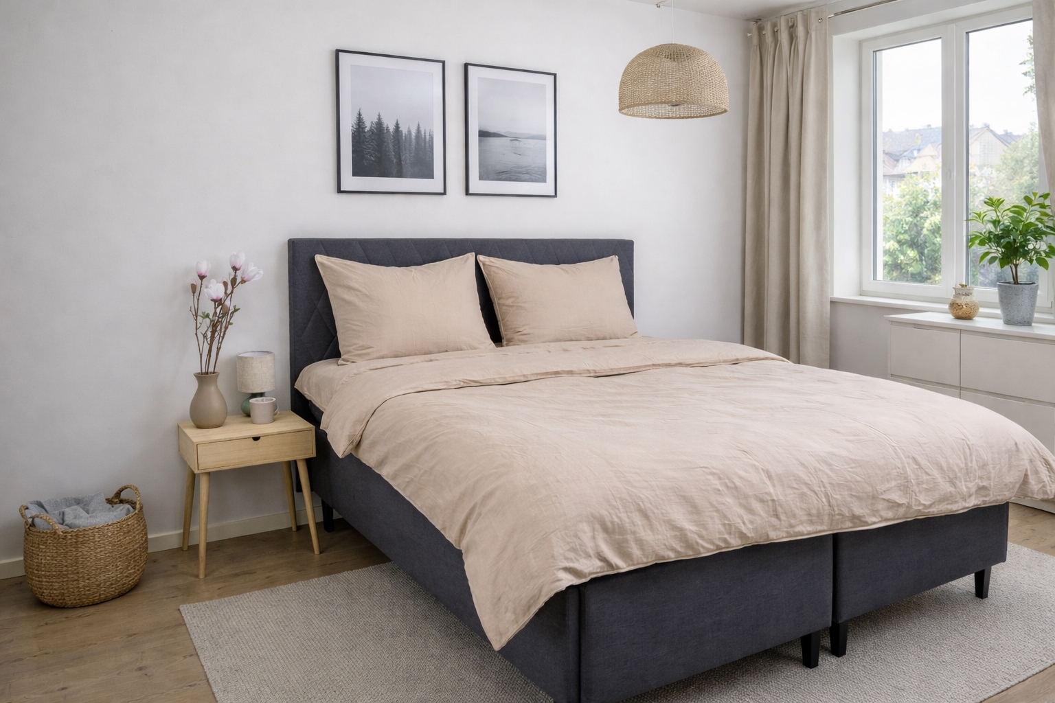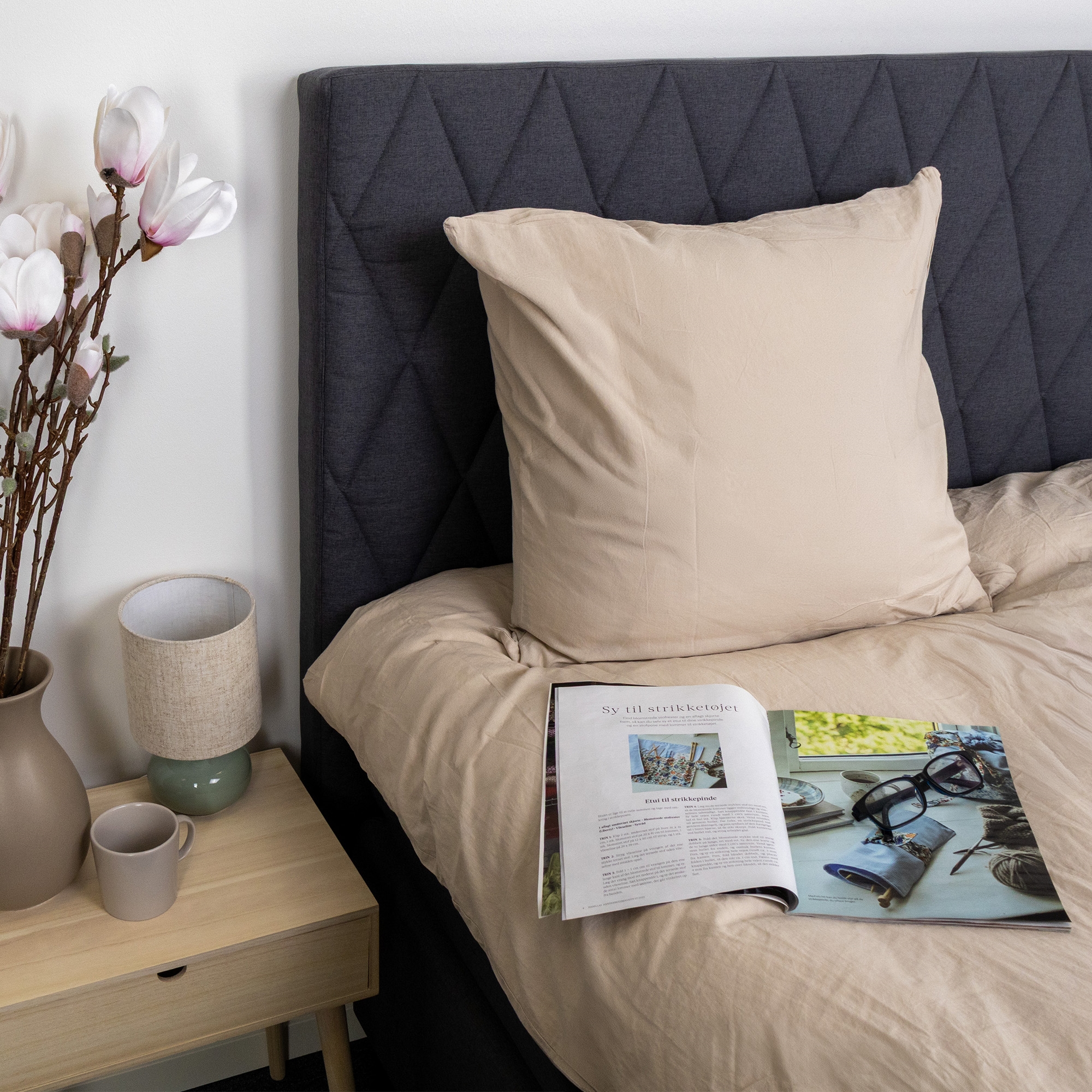 Die Decken- und Kissenbezüge werden mit einem innenliegenden, verdeckten Reißverschluss verschlossen, der ein stilvolles Erscheinungsbild bietet und das Wechseln der Bettwäsche erleichtert. Der sandfarbene Ton und das einfarbige Design machen das Set leicht kombinierbar mit sowohl hellen als auch dunklen Einrichtungsgegenständen im Schlafzimmer.