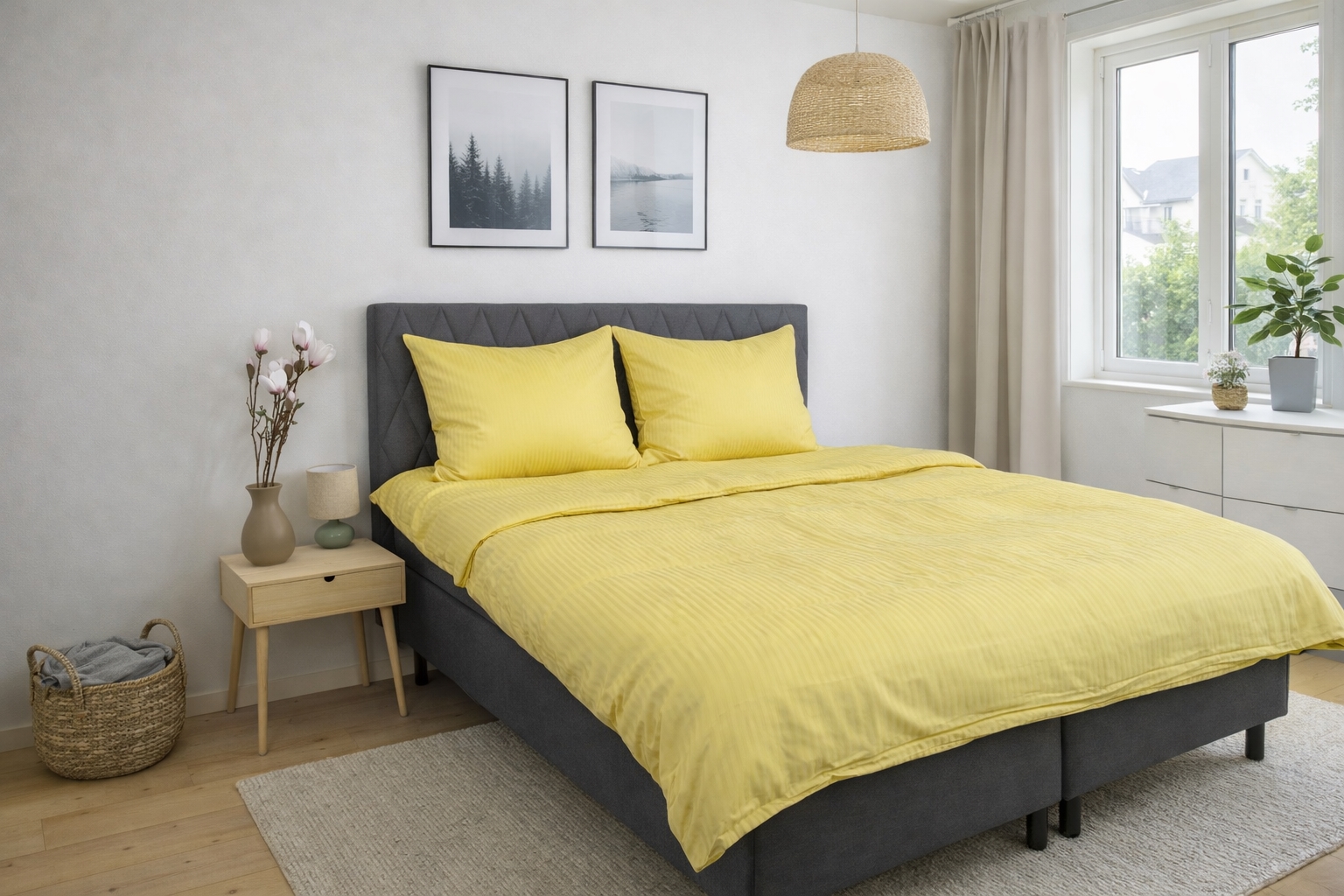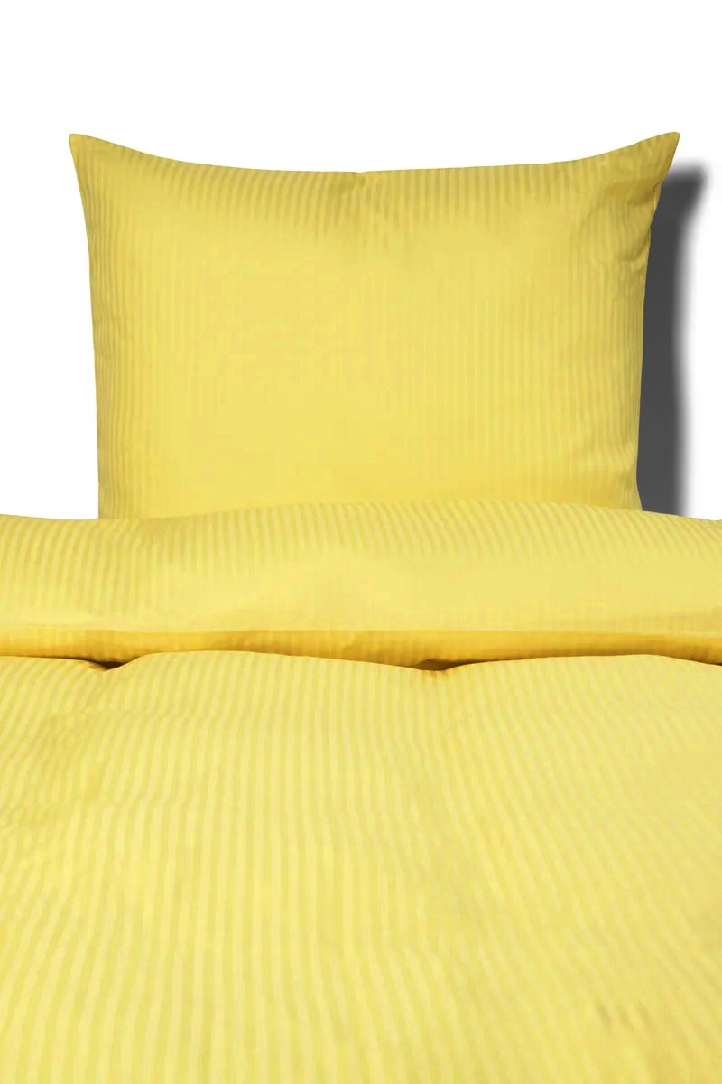 Bettwäsche 200 x 220 cm - gelbe, gestreifte Bettwäsche - 100 % ägyptische Baumwolle - Doppelbettbezug