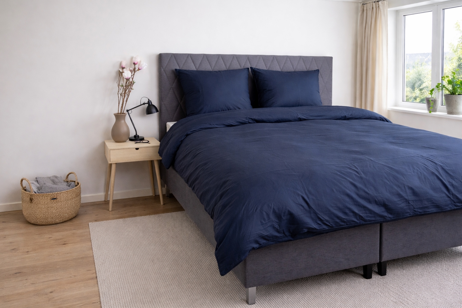 Bettwäsche aus Bambus - 140x200 cm - 100 % natürlicher Bambus - Nature by Borg - Dunkelblaues, satin gewebtes Bettbezug