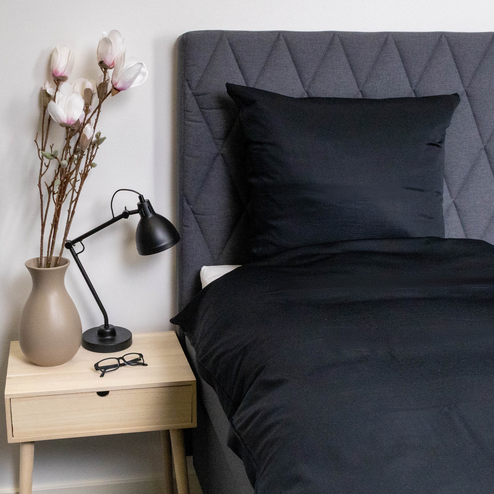 Bettwäsche aus Bambus - 140x200cm - 100 % natürlicher Bambus - Nature By Borg - Schwarzer, satinierter Bettbezug