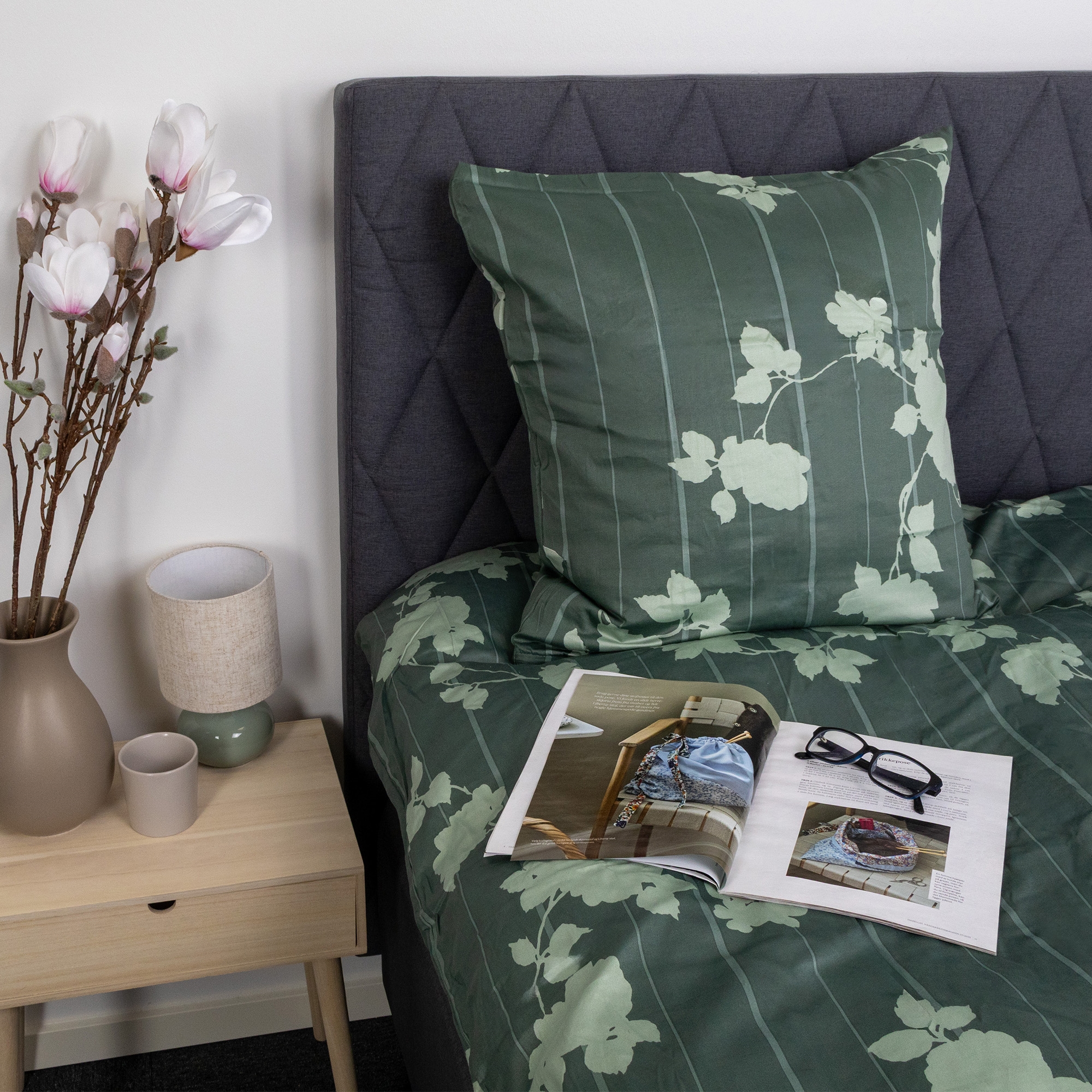 Schaffen Sie einen ruhigen und exklusiven Eindruck im Schlafzimmer mit diesem geblümten Luxus-Doppelbett-Set aus 100% Baumwollsatin von By Borg. Das stilvolle geblümte und gestreifte Design in Grün verleiht einen zeitlosen Look, der perfekt zu modernen und klassischen Schlafzimmern passt.