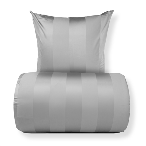 Schaffen Sie ein exklusives Hotelambiente im Schlafzimmer mit dieser grau gestreiften Bettwäsche für Doppeldecken aus 100% Baumwollsatin. Das elegante Design mit breiten, jacquardgewebten Streifen verbindet zeitlose Minimalistik mit luxuriösem Komfort und ist perfekt für Sie, die ein schlichtes und einladendes Schlafambiente wünschen.