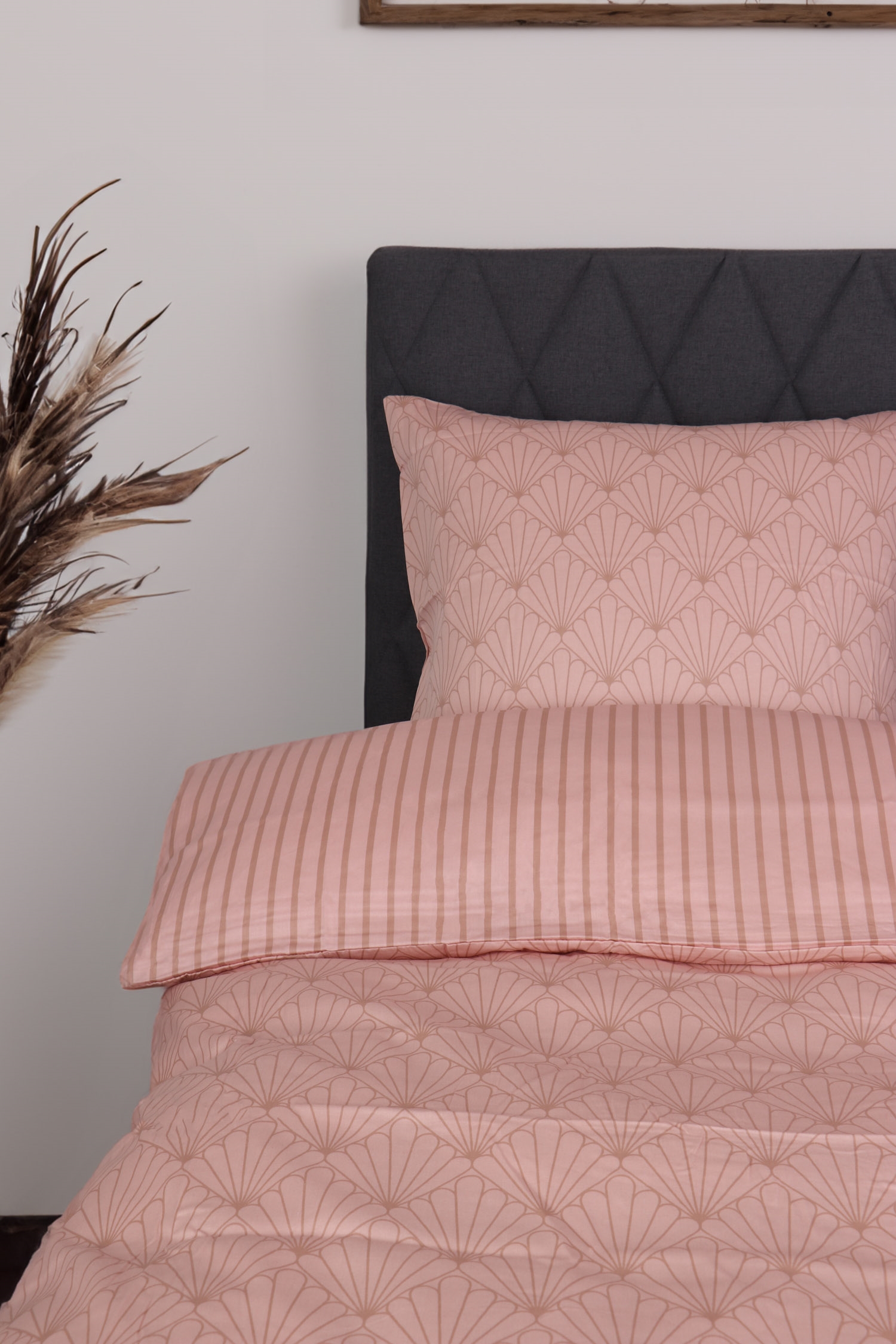 Startseite »Bettwäsche » Doppelbettwäsche » Doppelbettwäsche 200x220 cm Bettwäsche für Doppeldecke - 200 x 220 cm - Wendedesign aus 100 % Baumwollsatin - Fan Peach - Bettwäsche-Set von By Night 2 x KissenbezügeSparen64% By Night 149,9954,49EURSparen 96,- Nur noch wenige auf Lager Größe auswählen Variante wählen Anzahl In den Warenkorb Mehr dazu unter: By Night Artikelnummer:491-5 Lies unseren Bettwäsche-Guide Sieh dir unsere große Auswahl an Laken an Sieh dir unsere große Auswahl an Decken 200x220 cm an Hast du Fragen zum Produkt? QualitätsbettwäscheExtra feines SatingewebeWeich und glänzend Deckenbezug: 200 x 220 cm Kissenbezüge: 2 Stk. á 60 x 63 cm Material: 100 % feiner Baumwollsatin Webart: Extrafeine 240TC-Satinwebung (Fadenzahl = Anzahl der Fäden pro Quadratzoll) Farbe: Pfirsich Design: Fan Wendbar: - Vorderseite: Grafisches Muster - Rückseite: Streifen Marke: By Night Verschluss: Decke und Kissenbezüge mit verdecktem YKK-Reißverschluss Waschen: 60° Trockner: Ja Bügelbar: Ja Zertifizierung: STANDARD 100 by OEKO-TEX® (2018OK0658) Bettwäsche aus 100 % dicht gewebtem Baumwollsatin. Dieses Bettwäsche-Set von By Night ist bekannt für seine schöne, glatte Oberfläche, die sich wunderbar weich auf der Haut anfühlt. Das Gute an Baumwollsatin ist, dass es atmungsaktiv ist und dich im Sommer angenehm kühl und im Winter warm hält. Diese Eigenschaft macht die Bettwäsche das ganze Jahr über nutzbar. Darüber hinaus ist der Bettbezug zu 100 % durchgefärbt. Das bedeutet, dass die Farbe während der Produktion in die Baumwollfasern eingebunden wird. Das Resultat ist eine unglaublich hohe Farb- und Waschechtheit. Das Bettwäsche-Set ist OEKO-TEX® zertifiziert. Die Zertifizierung gewährleistet, dass das Produkt keine gesundheitsschädlichen Stoffe enthält und unter angemessenen Bedingungen produziert wird, damit du nachts beruhigt schlafen kannst – wir achten auch auf die Umwelt. Wendbares Design: Diese Bettwäsche ist wendbar, das bedeutet, beide Seiten sind gemustert oder gefärbt. Ein Wendebettwäscheset bietet dir die Möglichkeit, durch Umdrehen das Aussehen zu verändern und es mit verschiedenen Dekorationen oder Farben im Schlafzimmer zu kombinieren. Wendbares Design – für eine flexiblere Inneneinrichtung! Das Bettwäscheset ist eine beliebte Wahl für alle, die schöne Bettwäsche mit einem stilvollen Aussehen wünschen. Decken- und Kissenbezüge schließen mit einem versteckten YKK-Reißverschluss. Kaufe hier einfach passende Kissenbezüge für deine zusätzlichen Kissen. Erfrische dein Bett und Schlafzimmer mit einem schönen und luxuriösen Bettwäsche-set wie diesem. Nutze gleichzeitig die Möglichkeit, dir maximalen Schlafkomfort zu sichern, indem du ein neues, weiches Bettlaken von hoher Qualität hinzufügst. Hier findest du unser großes Sortiment hochwertiger Bettlaken. By Night zeichnet sich durch dänisches Design aus – sie bieten dir komfortable Schlafkomponenten für dein nächtliches Umfeld in höchster Qualität. By Night produziert Bettwäsche und Laken für die ganze Familie und legt großen Wert auf aktuelle Trends. Dadurch entstehen immer modische Farben und Designs. Zurück zu Doppelbettwäsche 200x220 cm