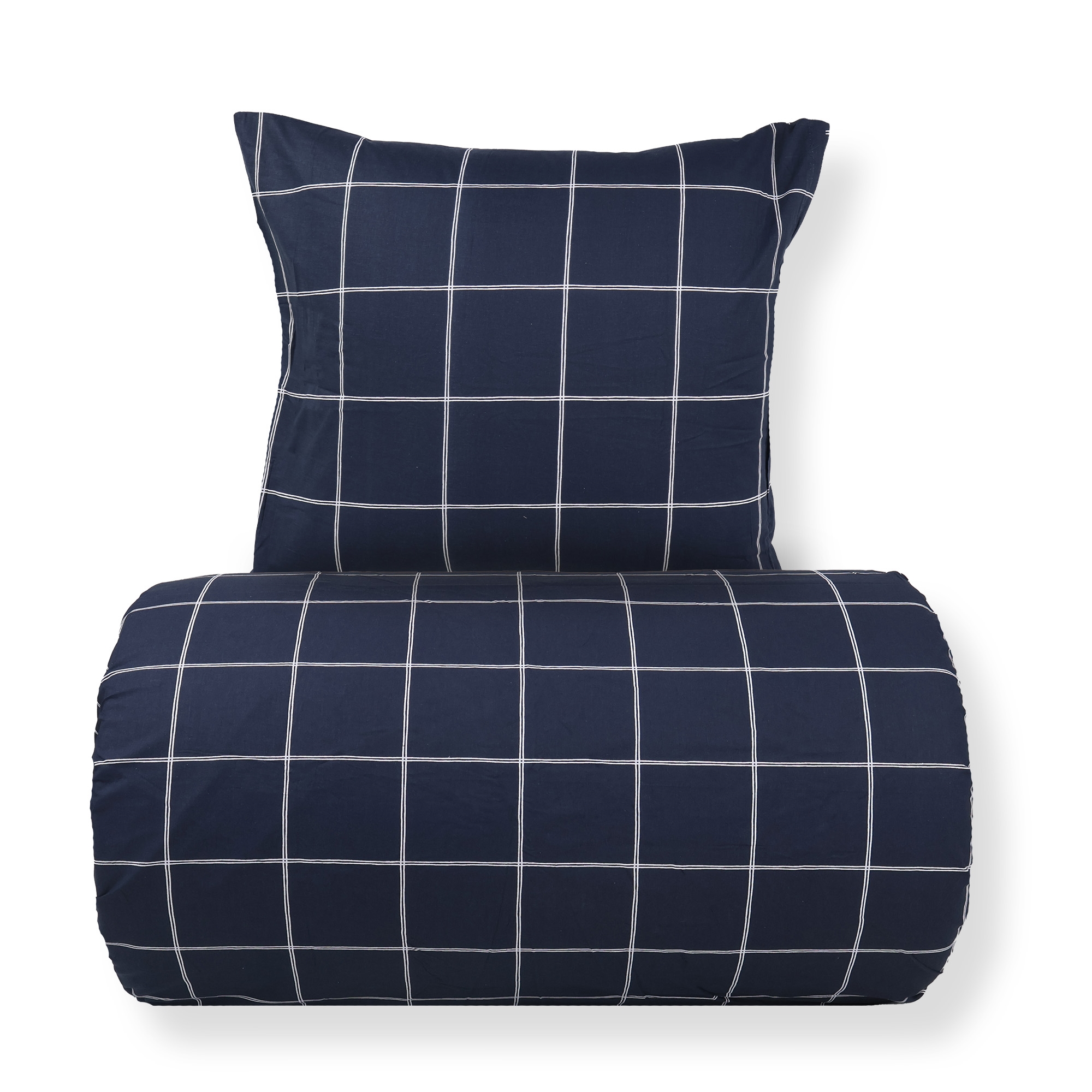 Doppelbett-Bettwäsche aus Baumwolle mit blauem Karomuster