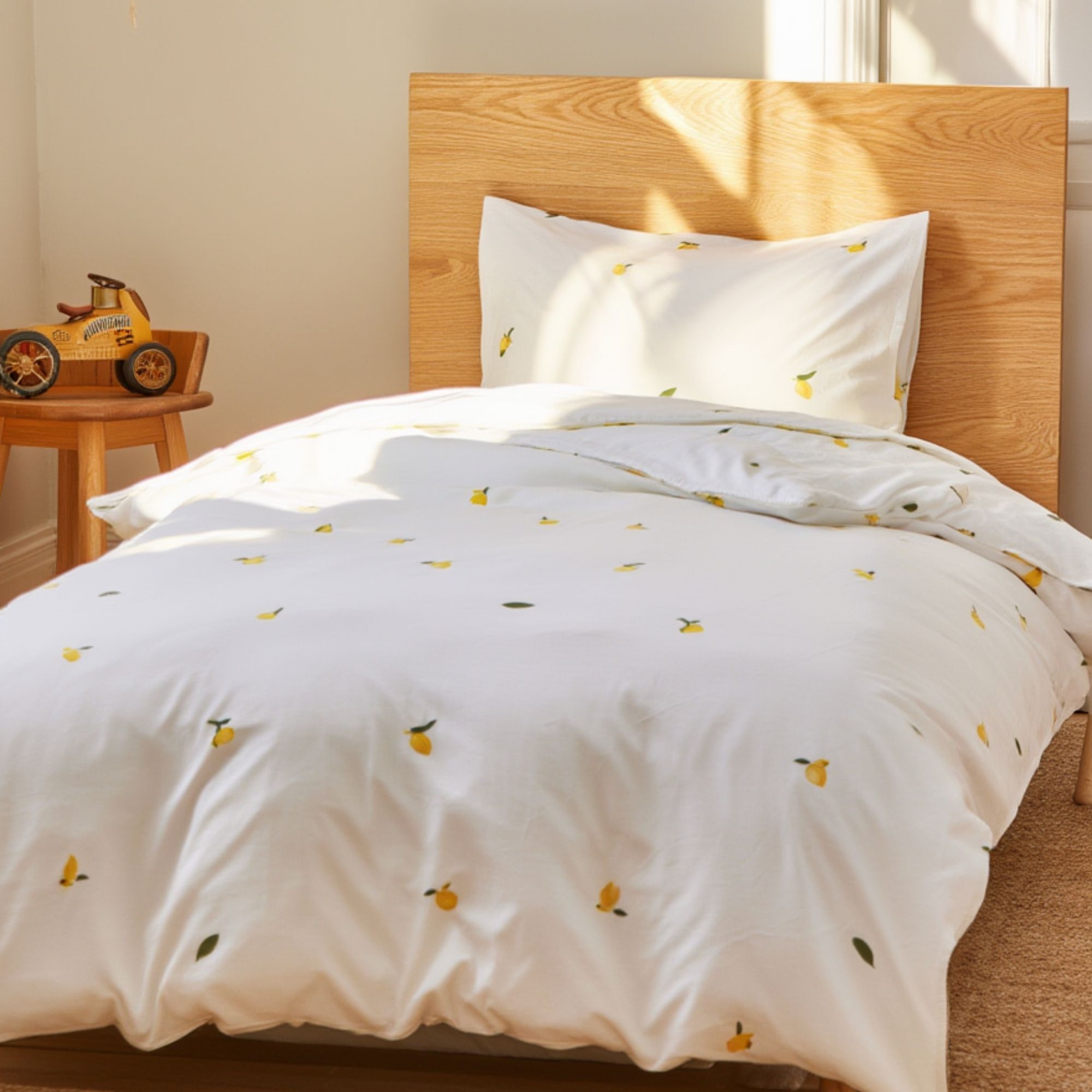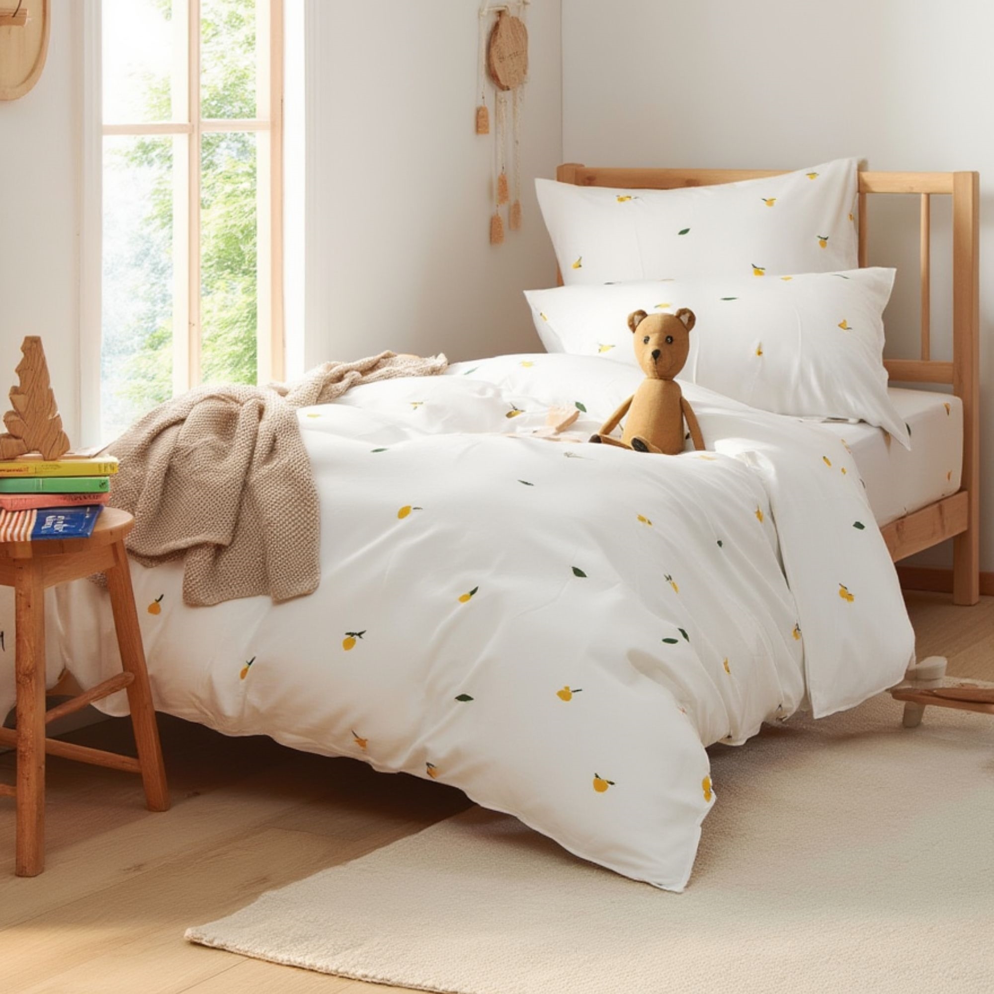 Schaffen Sie eine helle und ruhige Atmosphäre im Kinderzimmer mit dieser hübschen Baby-Bettwäsche von By Mats in einem warmen Sandton mit kleinen, dekorativen Zitronen. Das schlichte, nordische Design verleiht einen weichen und harmonischen Ausdruck, der sowohl in moderne als auch klassische Einrichtungsstile passt.