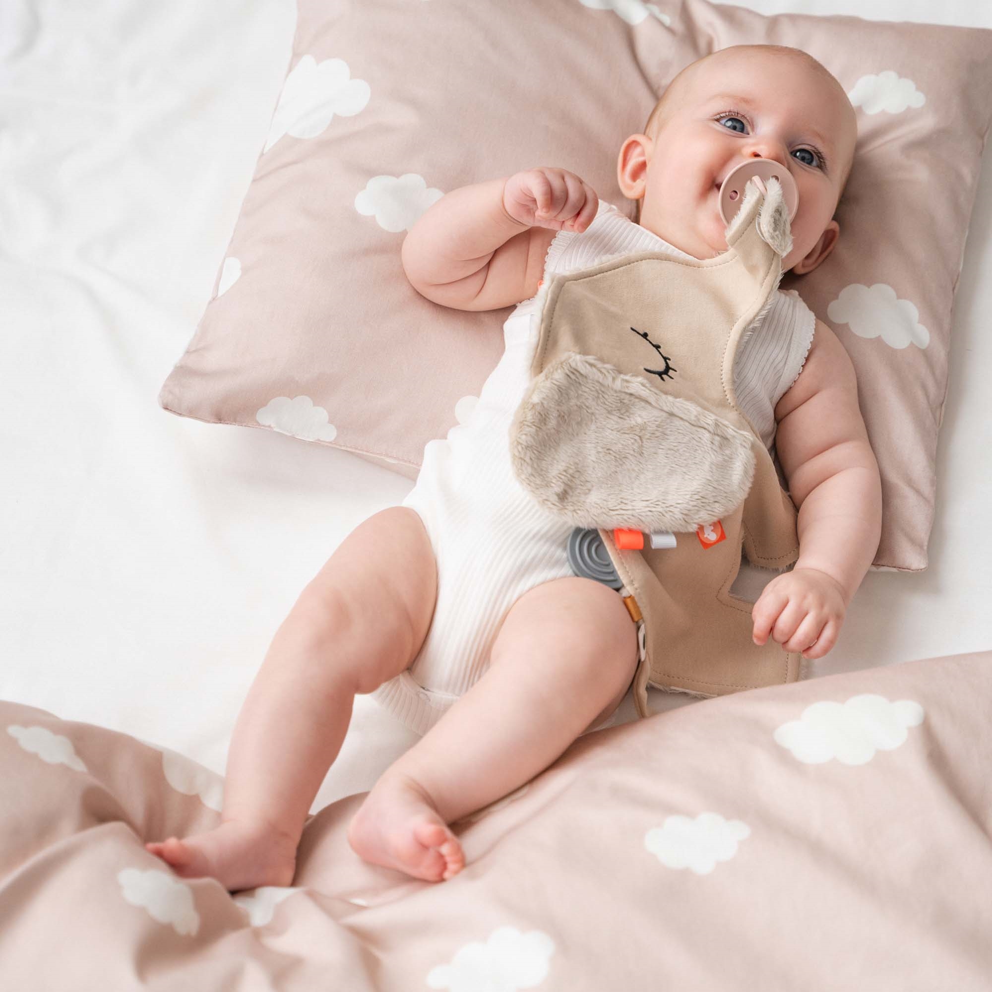 Die Bettwäsche ist aus 100% weicher Baumwolle gefertigt und OEKO-TEX® zertifiziert, was sie besonders schonend zur empfindlichen Babyhaut macht und frei von schädlichen Chemikalien ist. Die weiche Qualität sorgt für hohen Komfort und einen ruhigen, angenehmen Schlaf.