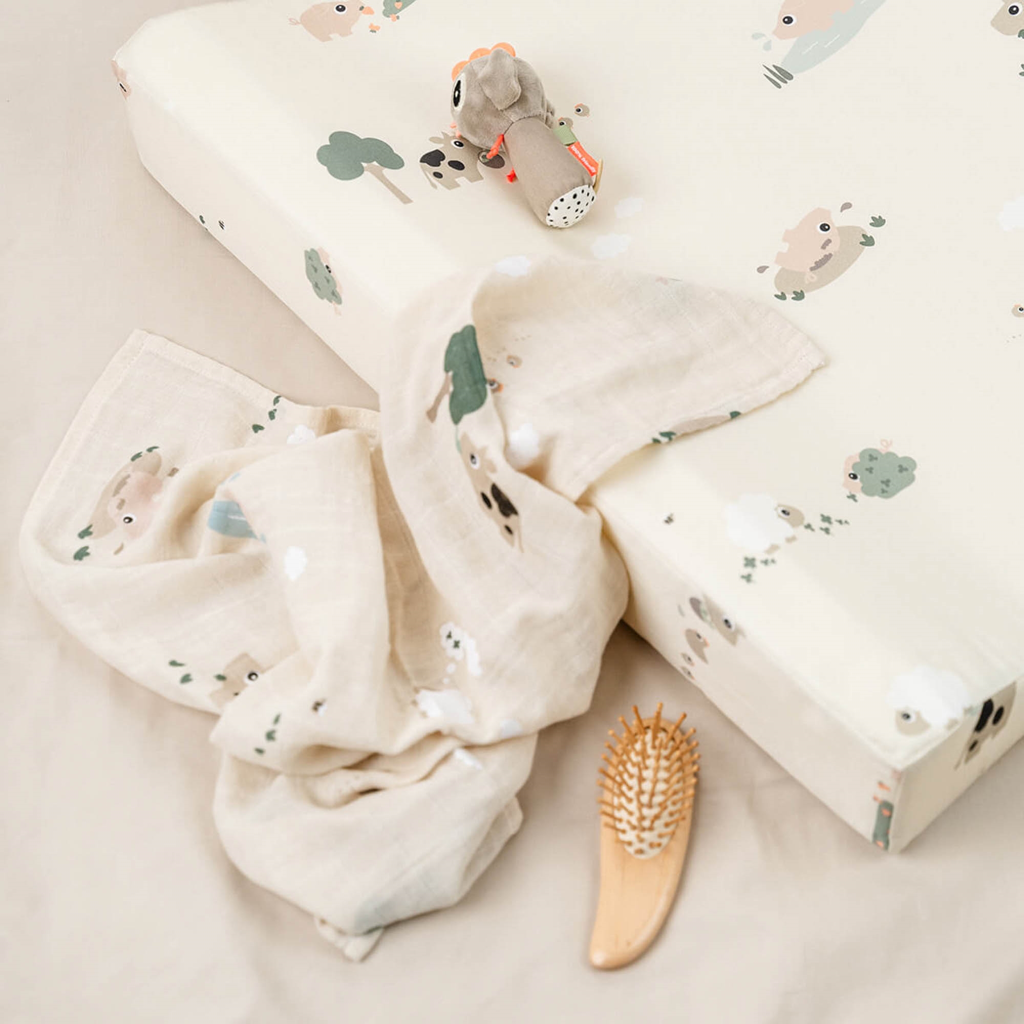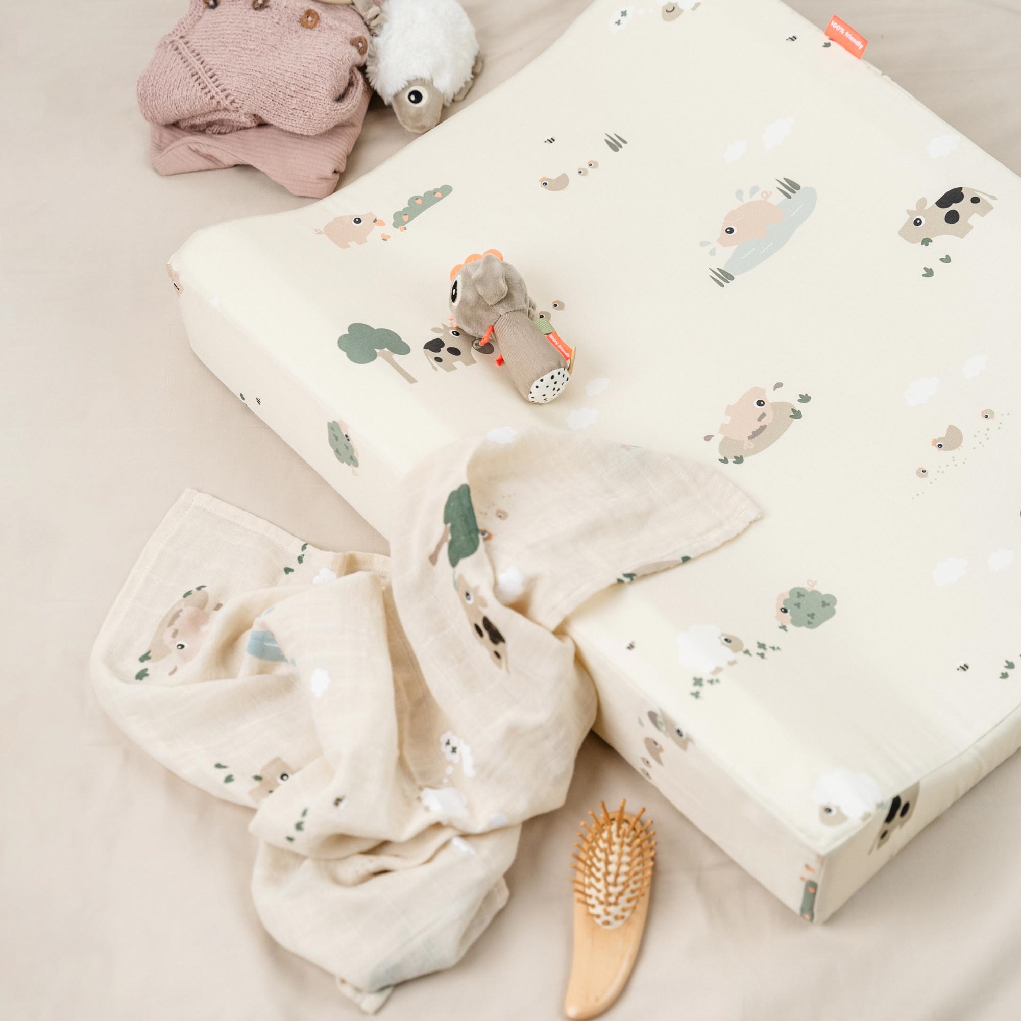 Startseite »Inneneinrichtung » Das Kinderzimmer » Wickelkissen Done By Deer Wickelauflage - wasserabweisender Bezug - Tiny Farm - Sand Done By Deer Guter Preis:59,99EUR Auf Lager Anzahl In den Warenkorb Mehr dazu unter: Done By Deer Artikelnummer:3253089 Hast du Fragen zum Produkt? Abnehmbarer, wasserabweisender und waschbarer BezugErhöhte Seitenkanten für zusätzliche SicherheitPU-Schaum bietet eine angenehme Liegefläche für Ihr Baby Typ: Wickelauflage Größe: 65x50 cm Höhe: 10 cm (Kanten) Füllung: 100% PU-Schaum. Bezug: 100% Polyester mit PU-Beschichtung (wasserabweisend) Farbe: Sand Serie: Tiny Farm Marke: Done By Deer Waschen: - Bezug: Maschinenwäsche bei 30 °C im Schonwaschgang, auf links gedreht - Matratze: Handwäsche Trockner: Nein Zertifizierung: STANDARD 100 by OEKO-TEX® (BJ025 153971 TESTEX). Ihre Garantie, dass das Produkt frei von gesundheitsschädlichen Chemikalien ist. Wickelauflage für Babys – Komfort, Sicherheit und einfache Reinigung Gestalten Sie die Wickelzeit sicher und komfortabel mit dieser praktischen Wickelauflage von Done by Deer im schönen Tiny Farm-Design. Die Wickelauflage misst 65x50 cm und wurde mit Fokus auf Komfort, Sicherheit und Funktionalität entwickelt. Die weiche Matratze aus PU-Schaum bietet Ihrem Kind eine angenehme Liegefläche, während die erhöhten Kanten dabei helfen, das Kind beim Wickeln sicher an seinem Platz zu halten. Das schafft zusätzliche Sicherheit im Alltag. Die Wickelauflage ist mit einer wasserabweisenden Oberfläche versehen, die sich leicht abwischen und sauber halten lässt. So können kleinere Missgeschicke schnell und unkompliziert beseitigt werden – perfekt für den hektischen Alltag mit Baby. Das attraktive sandfarbene Design mit Bauernhofmotiv verleiht dem Wickelplatz eine gemütliche und verspielte Optik. Gleichzeitig ist das Material nach OEKO-TEX® zertifiziert, sodass Sie sicher sein können, dass es frei von schädlichen Chemikalien ist und die Haut Ihres Kindes schont. Alle unsere Wickelauflagen ansehen Done by Deer Done by Deer ist eine dänische Marke, die skandinavisches Design mit funktionalen Lösungen für Babys und Kinder verbindet. Die Marke ist bekannt für ihre klaren Produkte in sanften Farben und verspielten Motiven, die perfekt in moderne Haushalte passen. Das Sortiment reicht von Geschirr, Brotdosen und Aufbewahrung bis hin zu Textilien, Spielzeug und Wohnaccessoires. Done by Deer legt großen Wert auf Qualität und Sicherheit. Die Produkte werden aus Materialien gefertigt, die den geltenden Standards für Lebensmittelsicherheit und Kinderprodukte entsprechen, sodass Sie sie im Alltag bedenkenlos verwenden können. Hier finden Sie das komplette Sortiment von Done By Deer. Zurück zu Wickelkissen
