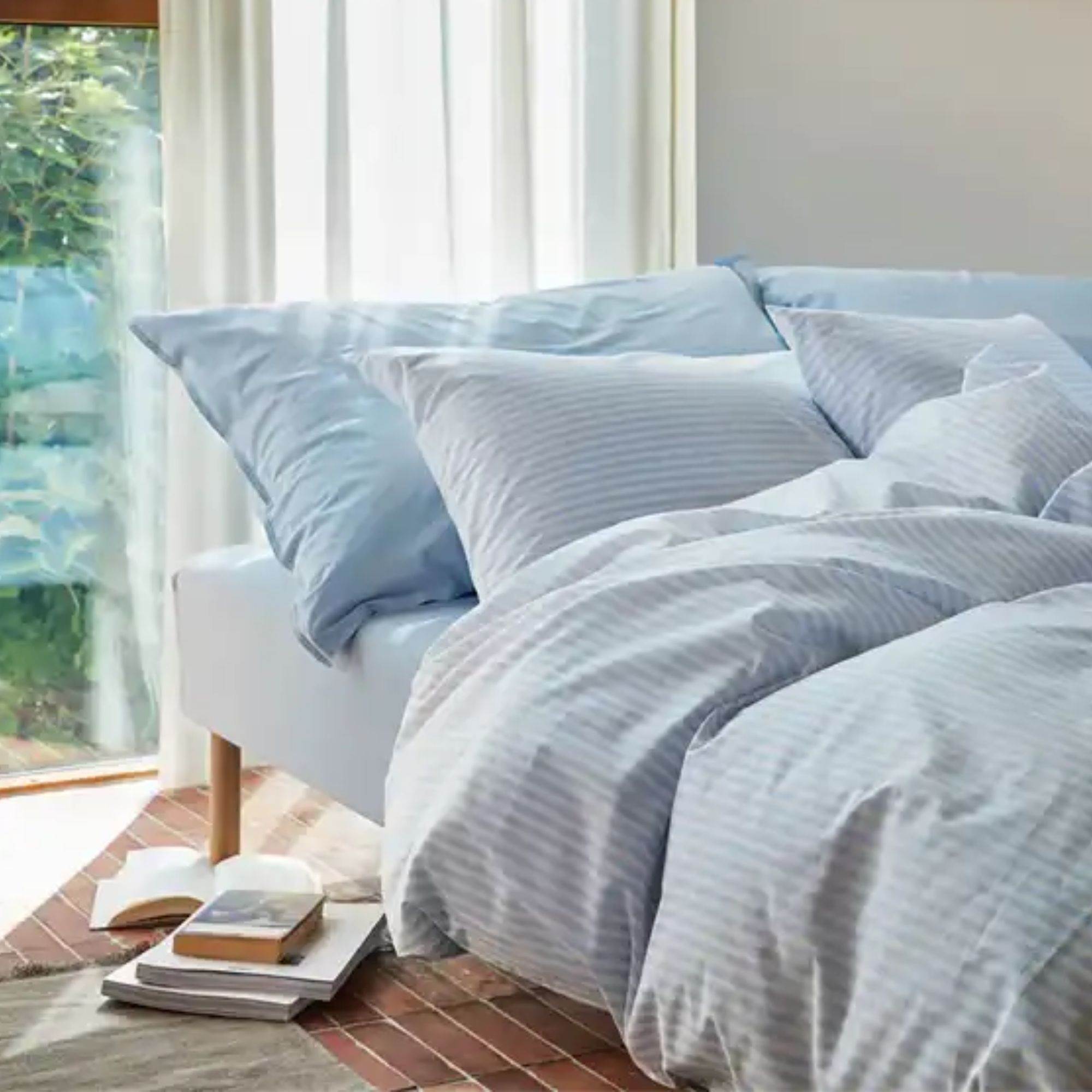 Startseite »Bettwäsche » Doppelbettwäsche » Doppelbettwäsche 200x220 cm Doppel-Bettwäsche 200x220 cm - 100% Baumwolle - Høie of Scandinavia - Tor Light Blue Sparen22% Høie Of Scandinavia 122,4995,49EURSparen 27,- Kostenloser Versand für diesen ArtikelAuf Lager Größe auswählen Variante wählen Anzahl In den Warenkorb Mehr dazu unter: Høie Of Scandinavia Artikelnummer:7965-5 Lesen Sie unseren Bettwäsche-Guide Sehen Sie unsere große Auswahl an Laken Siehe unsere große Auswahl an Decken 140x200 Hast du Fragen zum Produkt? Atmungsaktives Material, das einen guten Schlaf fördertWeiche Bettwäsche, die sich angenehm auf der Haut anfühltFür einen komfortablen Schlaf die ganze Nacht Bettbezug: 200x220 cm Kissenbezug: 2 Stk. á 60x63 cm Material: 100% extra-feine Baumwolle Webart: Extra-feine 220TC (Thread count = Anzahl Fäden pro Quadratzoll) Farbe: Hellblau Design: Tor Light Blue Marke: Høie of Scandinavia Verschluss: Bettbezug mit Reißverschluss, Kissenbezüge mit Überlappung Waschen: 60° Trockner: Trocknergeeignet: Ja Bügeln: Ja Zertifizierung: EASY CARE-behandelt, das bedeutet, dass es nach dem Waschen nicht knittert. Zertifizierung: STANDARD 100 by OEKO-TEX® (M27MV9610). Ihre Garantie, dass das Produkt frei von gesundheitsschädlicher Chemie ist. Gestreifte Bettwäsche aus extra-feiner Baumwolle von Høie Dieses Bettwäscheset von Høie Of Scandinavia ist aus 100% extra-feiner Baumwolle mit einer feinen 220TC Webart gefertigt, die eine weiche und glatte Oberfläche mit dezentem Glanz ergibt. Baumwolle ist ein natürlicher Werkstoff, der sich weich auf der Haut anfühlt und gleichzeitig atmungsaktiv ist, sodass der Körper nachts Wärme und Feuchtigkeit abgeben kann. Das macht Baumwollbettwäsche für den ganzjährigen Gebrauch sowie für warme und kühlere Nächte geeignet. Baumwolle ist bekannt für ihre Robustheit und Strapazierfähigkeit und kann häufiges Waschen und den täglichen Gebrauch aushalten, ohne dass die Qualität leidet. Doppelbett-Bettwäsche ist die ideale Wahl für alle, die eine Doppelbettdecke nutzen und ein einheitliches, ruhiges Erscheinungsbild im Bett wünschen. Doppelbett-Bettwäsche bietet viel Bewegungsfreiheit während der Nacht und ist sowohl für Paare als auch für alle geeignet, die zusätzlichen Platz und Komfort wünschen. In diesem Set sind ein Bettbezug und zwei Kissenbezüge enthalten. Die Bettwäsche ist STANDARD 100 by OEKO-TEX® zertifiziert, was Ihre Garantie dafür ist, dass das Produkt frei von gesundheitsgefährdender Chemie ist. Sie ist zudem Easy Care-behandelt, was weniger Knitter und bessere Formbeständigkeit nach dem Waschen sichert. Easy Care macht Ihre Bettwäsche extra weich und leicht zu bügeln. Baumwollsatin-Bettwäsche ist daher eine ausgezeichnete Wahl für alle, die zusätzlichen Komfort und ein hotelähnliches Gefühl zu Hause wünschen, aber dennoch ein Naturmaterial bevorzugen, das pflegeleicht und angenehm zu schlafen ist. Sehen Sie hier unsere gesamte Bettwäsche aus Baumwolle Høie Of Scandinavia Høie of Scandinavia ist eine bekannte skandinavische Textilmarke, die seit 1850 eine lange Geschichte hat, insbesondere im Bereich Bettwäsche, Decken und Kissen. Høie ist bekannt für hohe Qualität, zeitloses Design und Komfort - das spiegelt sich in ihrem nordischen Stil und ihrer Funktionalität wider. Høie kombiniert traditionelle Handwerkskunst mit moderner Produktion und Materialien, um Produkte zu schaffen, die sowohl angenehm im Schlaf als auch langlebig im Alltag sind. Sehen Sie das gesamte Sortiment von Høie hier Zurück zu Doppelbettwäsche 200x220 cm