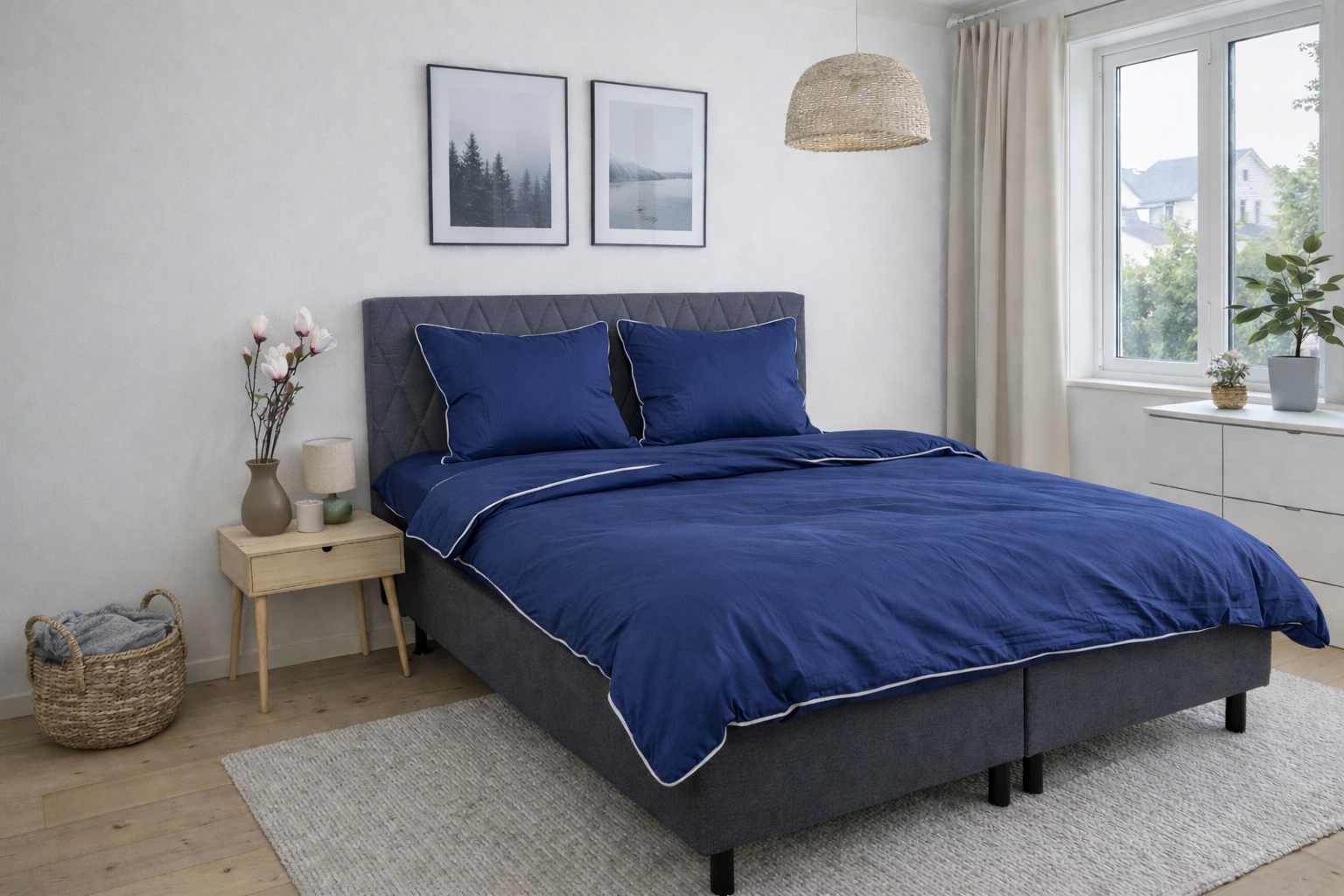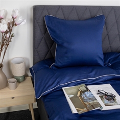 Schaffen Sie einen eleganten und luxuriösen Ausdruck im Schlafzimmer mit diesem exklusiven Bettwäsche-Set für Doppelbetten aus 100% Baumwollsatin mit dekorativer Paspel von By Borg. Das einfarbige Design in tiefem Blau kombiniert mit einer weißen Paspel verleiht ein schlichtes und anspruchsvolles Erscheinungsbild, das den Gesamteindruck des Schlafzimmers hebt.
