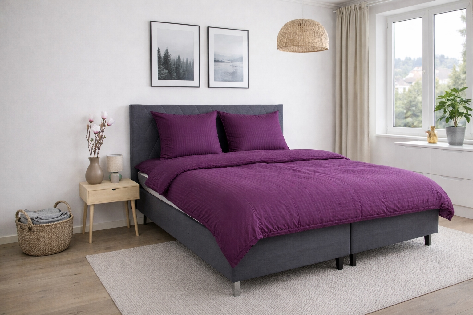 Bettwäsche für Doppelbettdecken ist die ideale Wahl, wenn Sie eine Doppelbettdecke verwenden und ein einheitliches, ruhiges Erscheinungsbild im Bett wünschen. Doppelbett-Bettwäsche bietet viel Bewegungsfreiheit während der Nacht und eignet sich sowohl für Paare als auch für alle, die extra Platz und Komfort wünschen. In diesem Set sind ein Bettbezug und zwei Kissenbezüge enthalten.