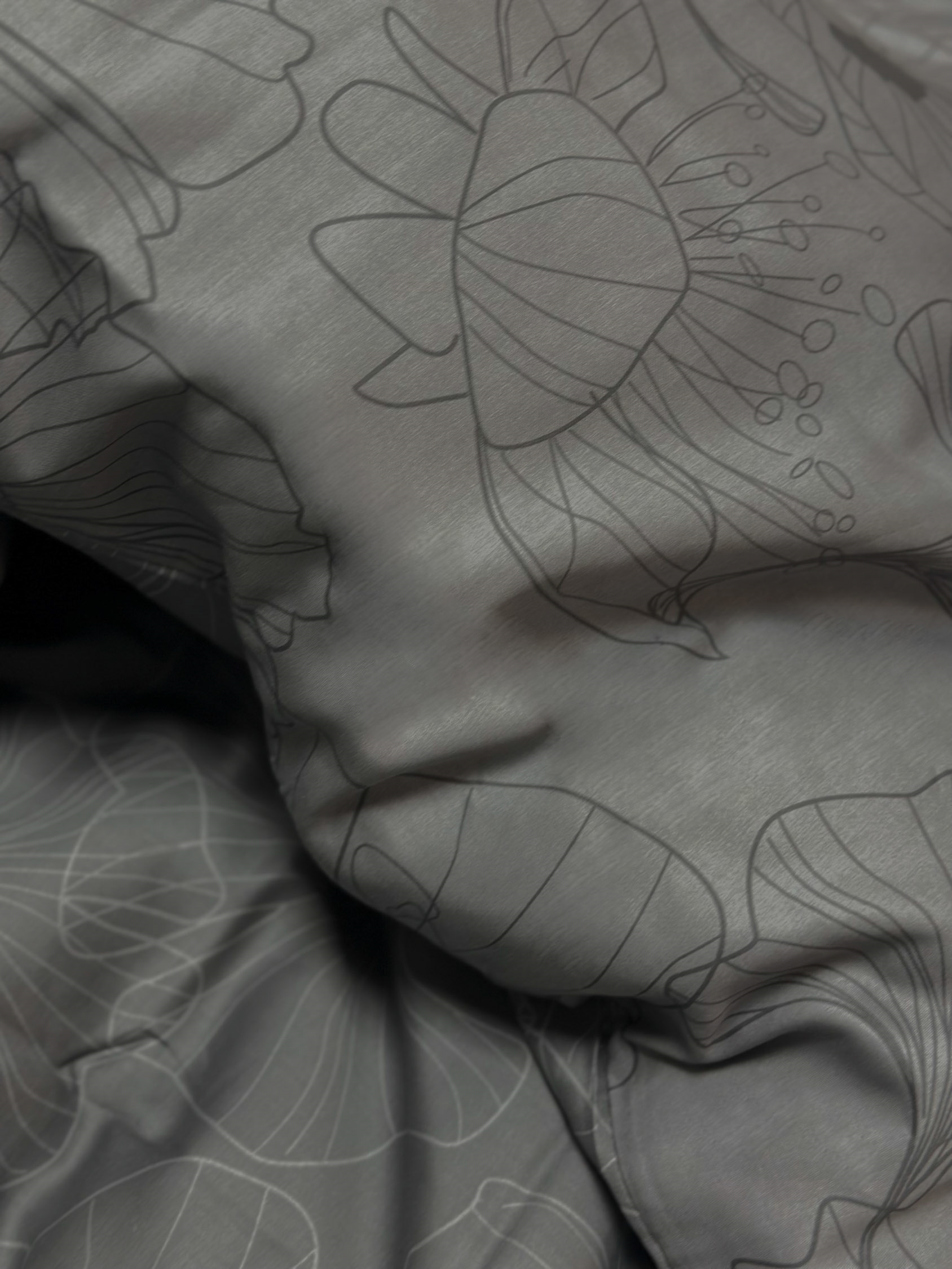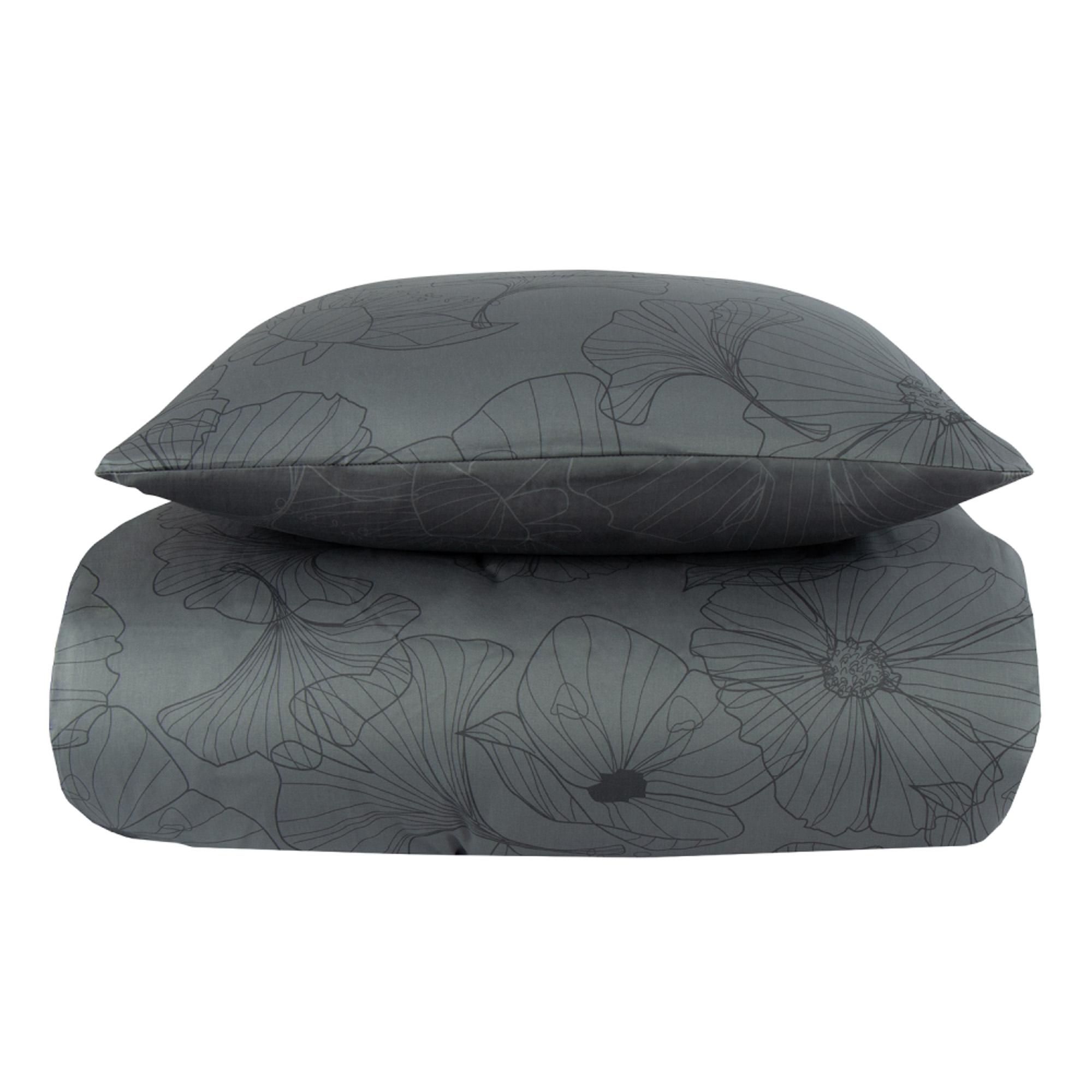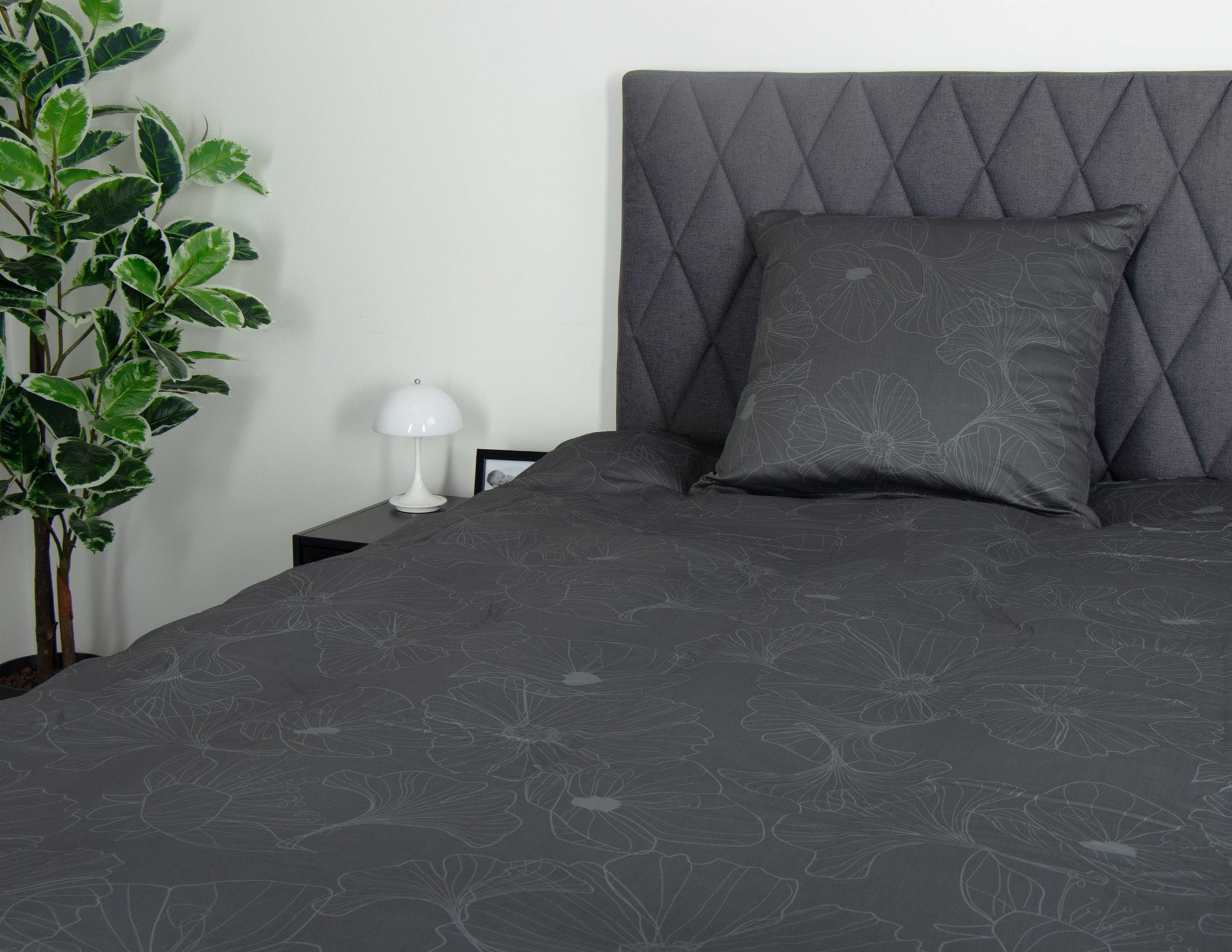 Das wendbare Design bietet Ihnen zwei verschiedene Looks in einem Set. Die Vorderseite zeigt ein elegantes Blumenprint in hellgrauen Tönen, während die Rückseite dunkelgrau ist. Dadurch lässt sich die Bettwäsche leicht mit verschiedenen Farben, Kissen und Plaids kombinieren und bietet größere Flexibilität in der Einrichtung.