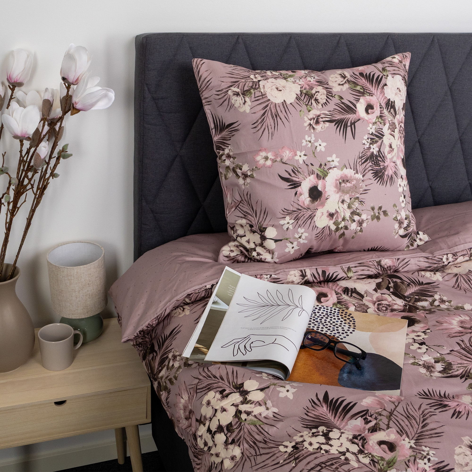 Schaffen Sie eine stimmungsvolle und elegante Atmosphäre im Schlafzimmer mit diesem schönen Doppelbettwäscheset aus 100% Baumwollsatin. Die Bettwäsche kombiniert ein dekoratives Blumenmuster mit einem ruhigeren, gepunkteten Design auf der Rückseite, sodass Sie den Ausdruck im Schlafzimmer einfach durch Wenden der Bettwäsche ändern können.