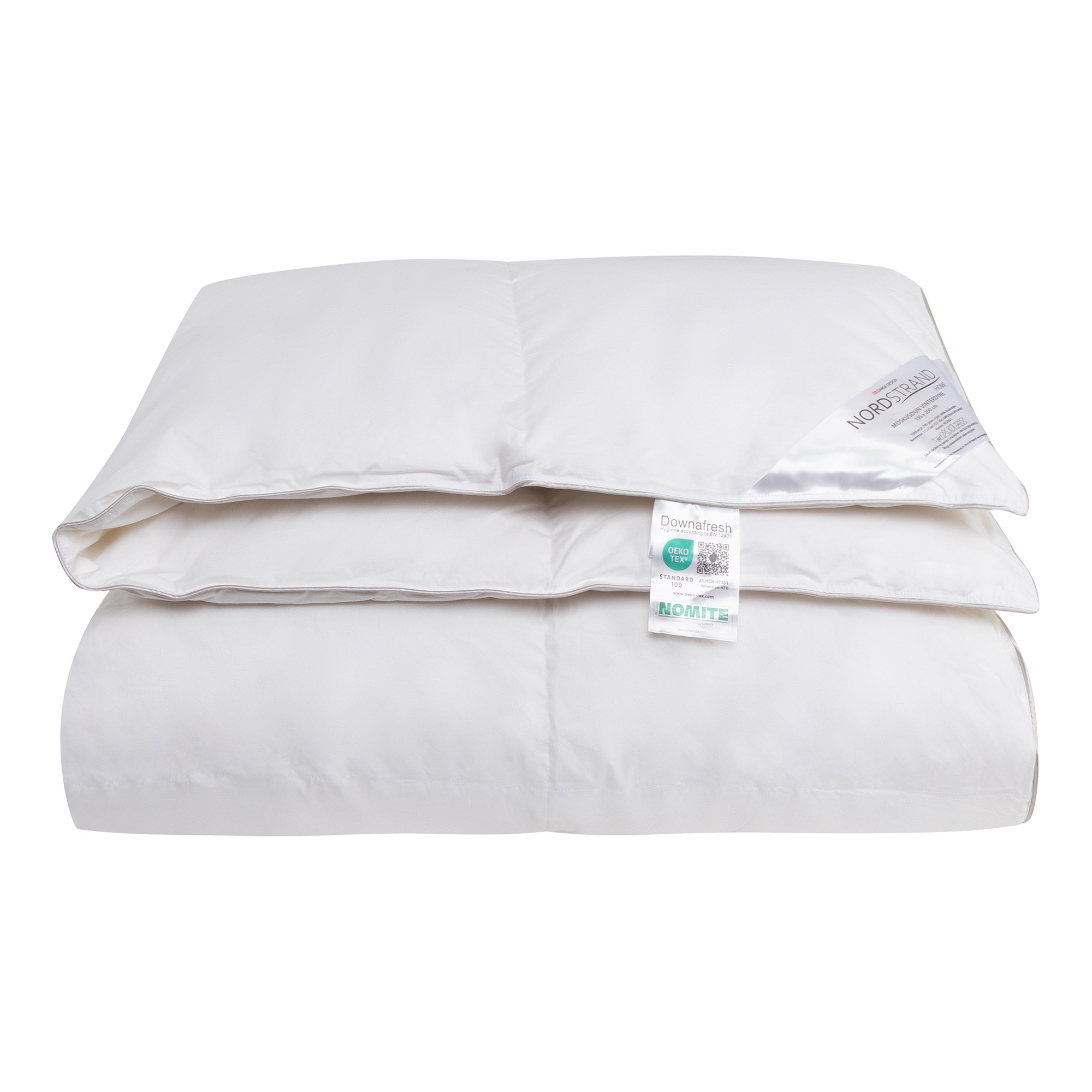 Der weiche Bezug aus 100% Baumwolle ist fein dicht gewebt in großen Kassetten, sodass die Daunen die besten Bedingungen für die höchste Isolierung und gleichmäßigste Wärmeverteilung haben. Diese dichte Webart macht die Decke auch NOMITE-zertifiziert, da Milben nicht durch den Bezug dringen können, was die Decke auch für Allergiker geeignet macht.