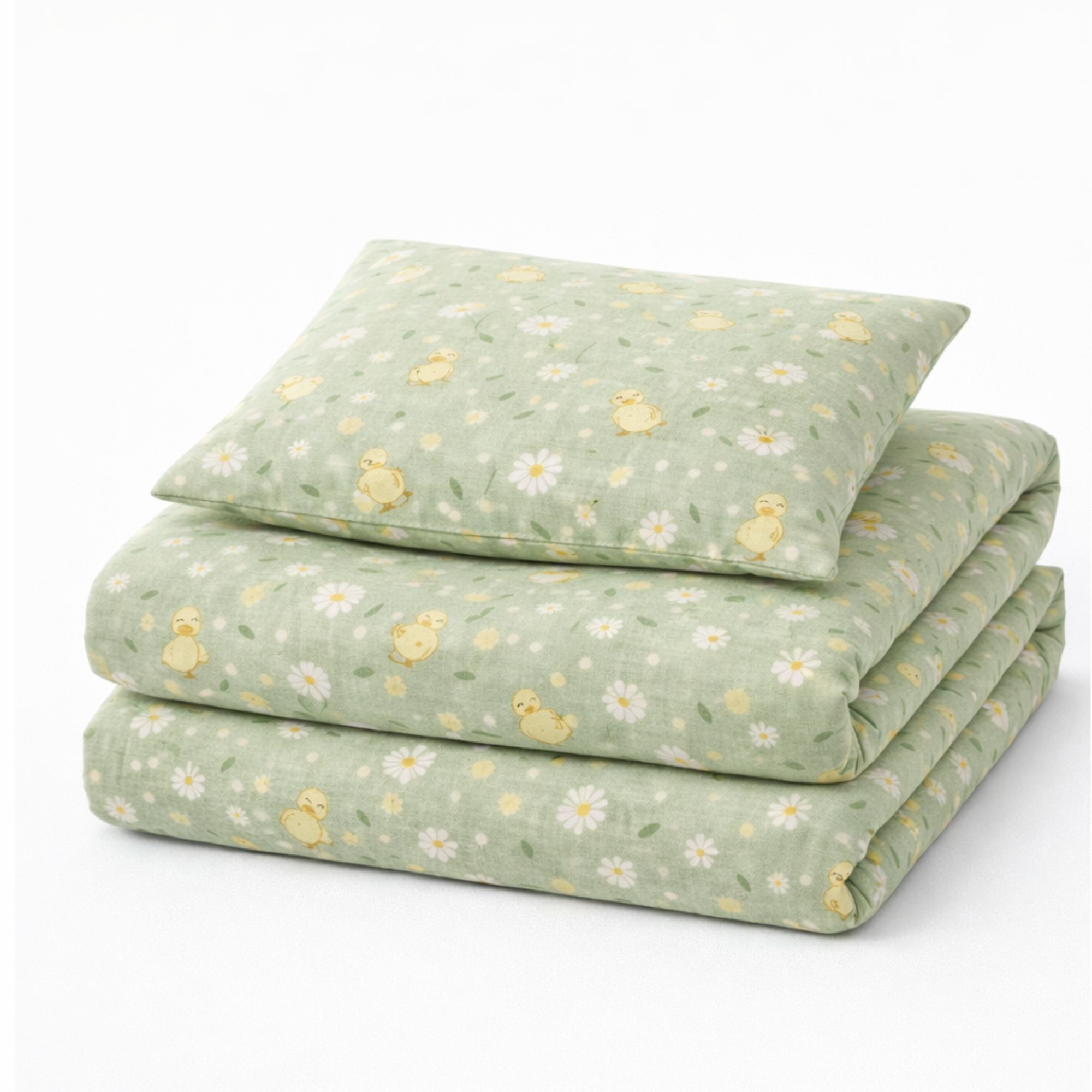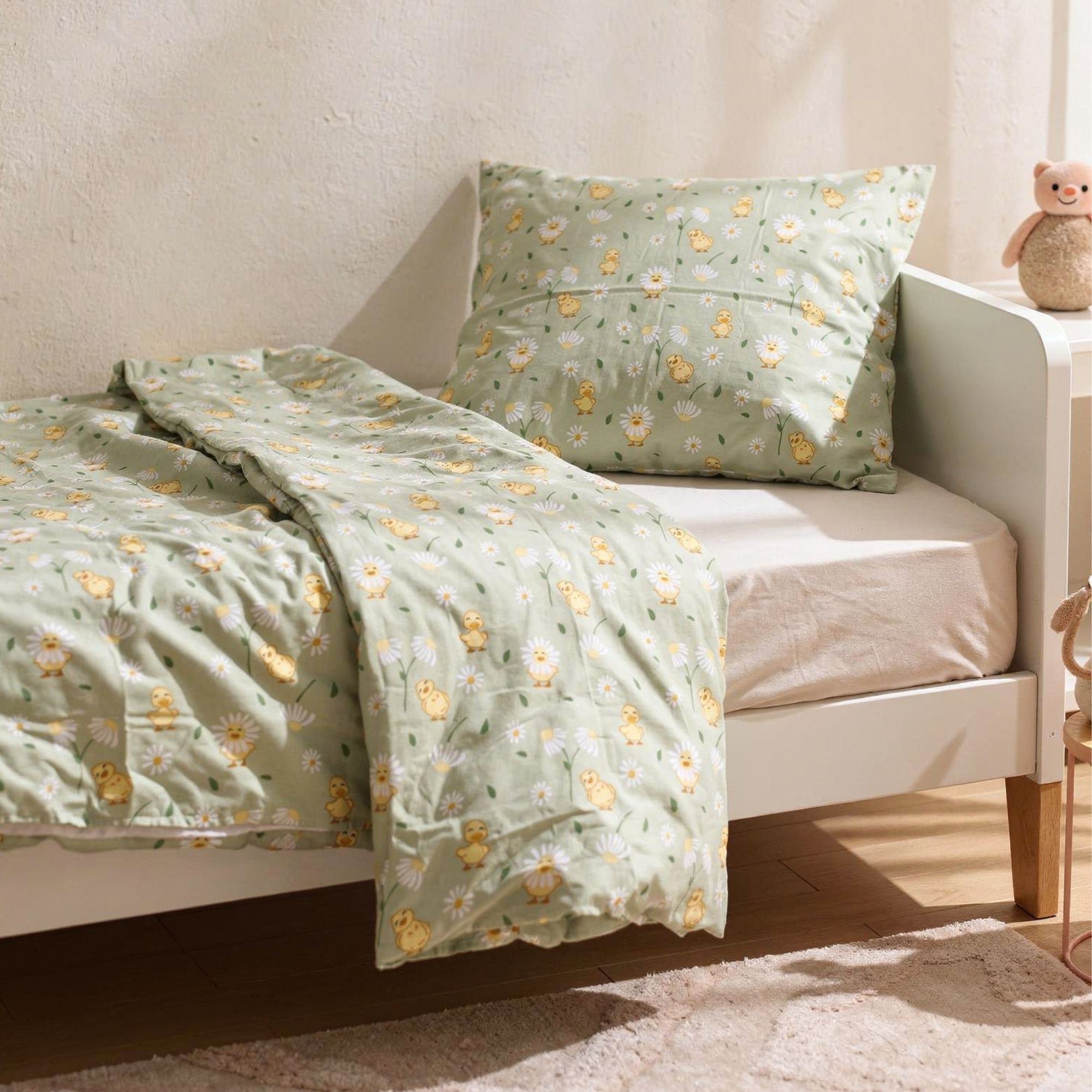 By Mats Baby-Bettwäsche 70x100 cm - grün mit Entchen und Blumen