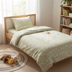 Schaffen Sie eine helle und ruhige Atmosphäre im Kinderzimmer mit dieser hübschen Baby-Bettwäsche von By Mats in einem grünen Farbton mit kleinen, dekorativen Entchen und Blumen. Das einfache nordische Design vermittelt einen weichen und harmonischen Ausdruck, der sowohl in moderne als auch klassische Einrichtungsstile schön passt.