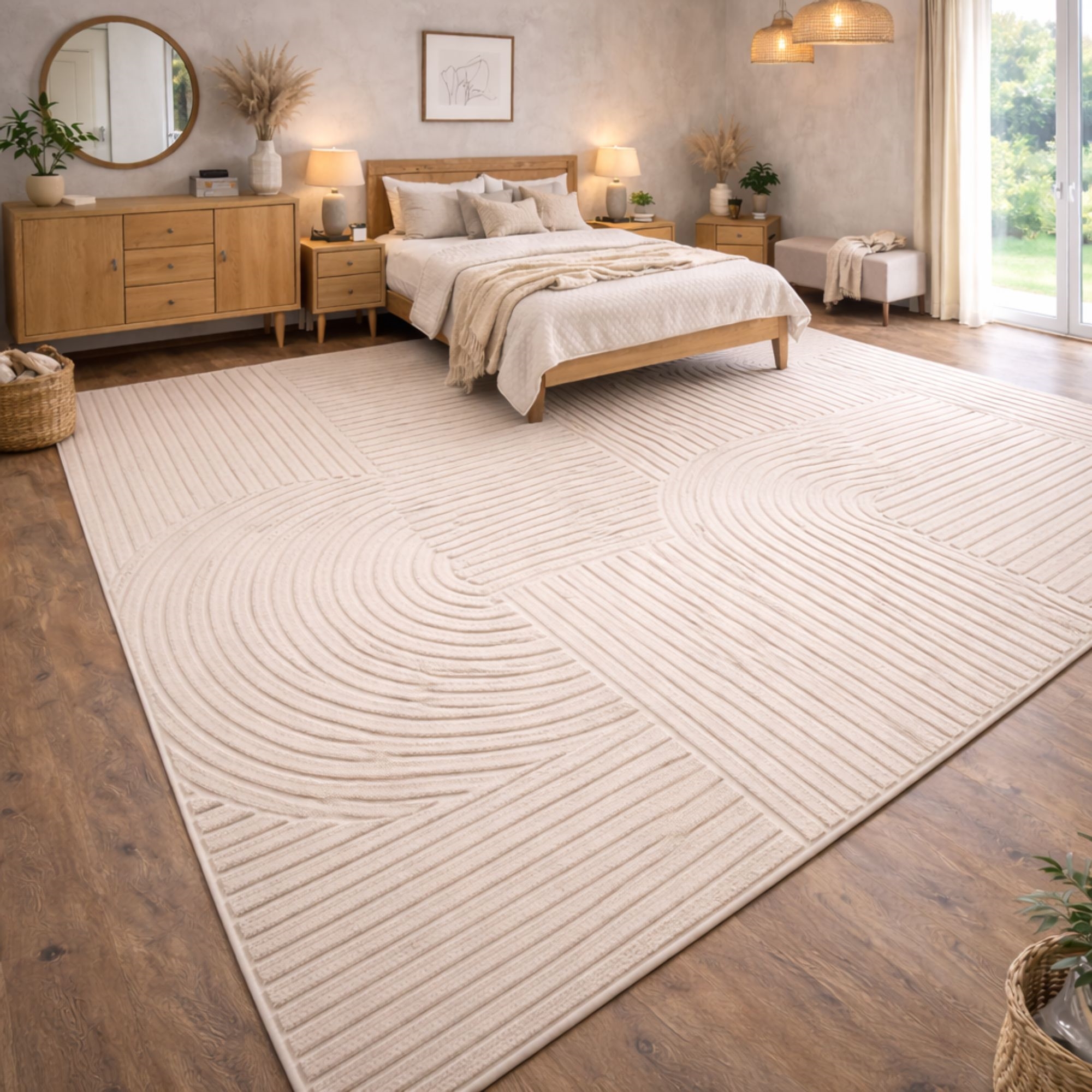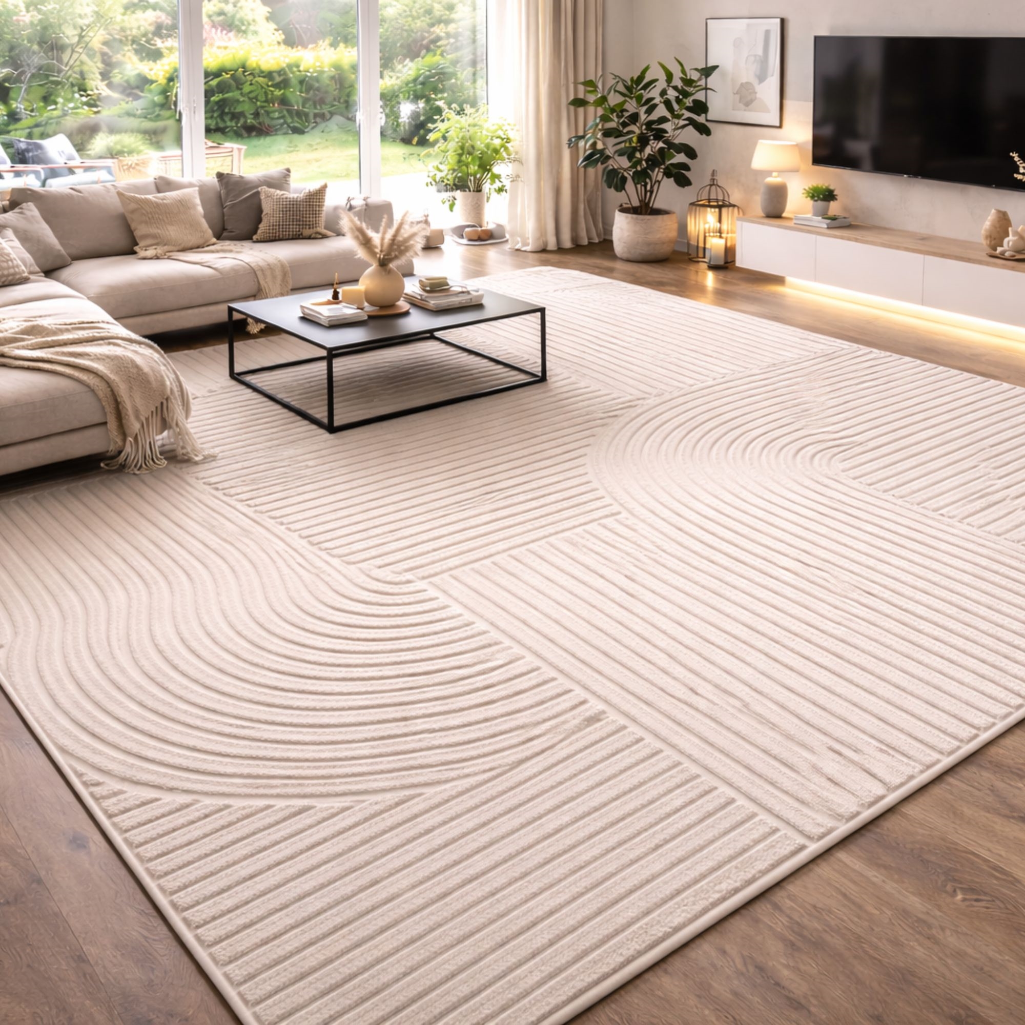 Startseite »Inneneinrichtung » Dekorationen » Teppiche Extra großer Teppich - 300x400 - Gewebt - Cremefarbig mit Muster - Elio - Nordstrand Home Sparen10% Nordstrand Home 680,49612,49EURSparen 68,- Kostenloser Versand für diesen ArtikelAuf Lager Anzahl In den Warenkorb Mehr dazu unter: Nordstrand Home Artikelnummer:TA1024-17 Sehen Sie unser großes Sortiment an künstlichen Pflanzen und Blumen Sehen Sie unsere Auswahl an Fußmatten Sehen Sie unser großes Sortiment an allem für Ihre Wohnraumgestaltung Hast du Fragen zum Produkt? Schöner Teppich mit dichter Webung und schöner StrukturPerfekte Größe für Wohnzimmer oder SchlafzimmerElegantes Ton-in-Ton-Design mit weichen Formen Typ: Kurzflor-Teppich Größe: 300x400 cm Dicke: 12 mm Farbe: Creme einfarbig Design: Elio Material: 50% PP (Polypropylen) und 50% PES (Polyester) Rückseite: Jute Verwendung: Innenbereich Marke: Nordstrand Home Anzahl Punkte/m2, dicht gewebt: 76.800 Empfohlene Pflege: Staubsaugen & feuchtes Tuch Zertifizierung: STANDARD 100 by OEKO-TEX® (11.HTR.94219). Ihre Garantie dafür, dass das Produkt frei von gesundheitsschädlichen Chemikalien ist. Fehlt Ihnen eine einfache und unkomplizierte Möglichkeit, in Ihrem Zuhause Zusammenhalt zu schaffen? Dann kann dieser extra große, schöne Teppich das Element sein, das die Einrichtung verbindet. Dieser schöne, große moderne Teppich kann ganz leicht den Ausdruck eines Raumes aufwerten – unter anderem weil er Komfort, Strapazierfähigkeit und ein stilvolles grafisches Design in einer Lösung vereint. Das helle Ton-in-Ton-Muster mit weichen, organischen Bögen peppt das Zuhause auf und passt perfekt zu nordischer und minimalistischer Einrichtung. Die cremefarbene Nuance verleiht dem Raum ein helles und einladendes Erscheinungsbild und harmoniert gut mit hellen Holzarten und beigen Tönen bis hin zu kontrastreicheren Umgebungen. Ein Teppich, der sich sowohl für Wohnzimmer, Schlafzimmer als auch Büro eignet, wenn Sie eine weiche und angenehme Oberfläche wünschen. Die kurz- bis mittellange Florqualität macht den Teppich pflegeleicht, da Staub und Schmutz nur schwer in die Fasern eindringen. Regelmäßiges Staubsaugen reicht aus, um das schöne Aussehen zu bewahren. Mit diesem schönen Teppich erhalten Sie also ein Produkt, das sowohl stilvoll als auch strapazierfähig ist und modernes Design mit Komfort kombiniert – ideal für Sie, wenn Sie einen dekorativen und praktischen Teppich für kleinere Bereiche Ihres Zuhauses suchen. Sehen Sie hier unsere große Auswahl an verschiedenen Wohntextilien Mit Nordstrand Home sind Sie sich Wohntextilien in dänischem Design – im nordischen Stil sicher. Nordstrand Home legt großen Wert auf das Gefühl von Wohlbefinden in einem schönen, zugleich entspannten Umfeld. Mit Nordstrand Home müssen Sie keine Kompromisse eingehen, Sie finden immer Produkte in klassischen und modischen Farben. Nordstrand Home – So fühlen Sie sich zuhause! Zurück zu Teppiche